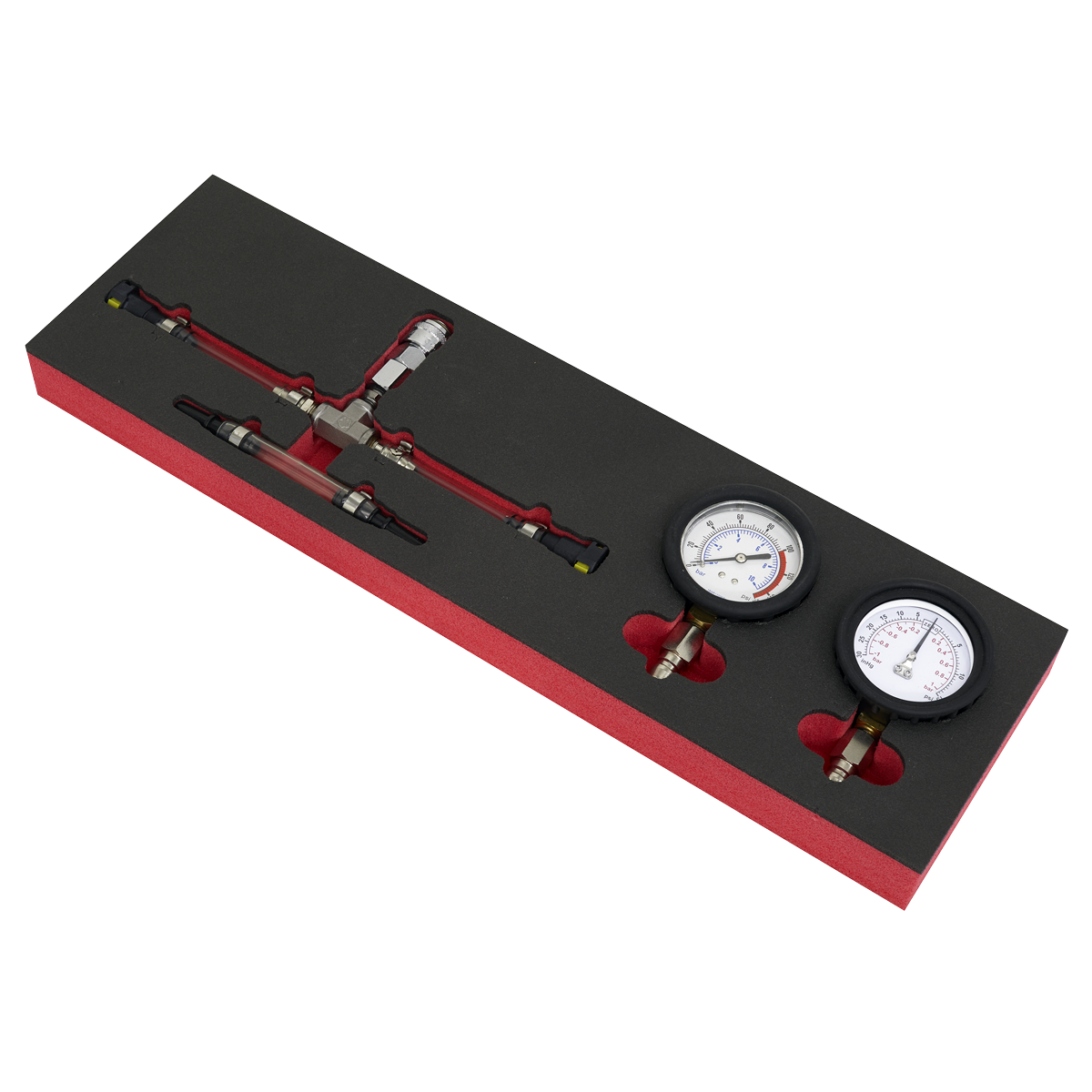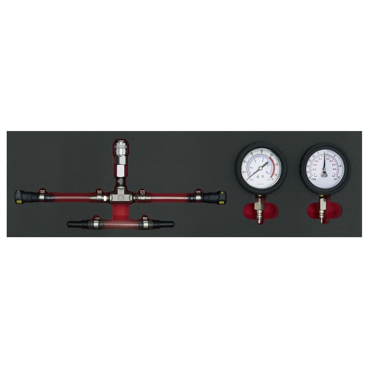 • Comprising of two gauges for positive/negative and main pressure testing on low-pressure delivery fuel circuit found on common rail systems.