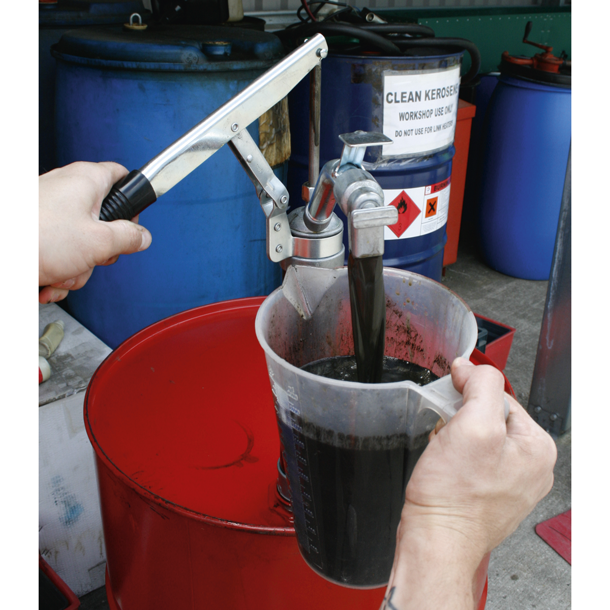 • Heavy-duty steel barrelled, self-priming, lever pump.