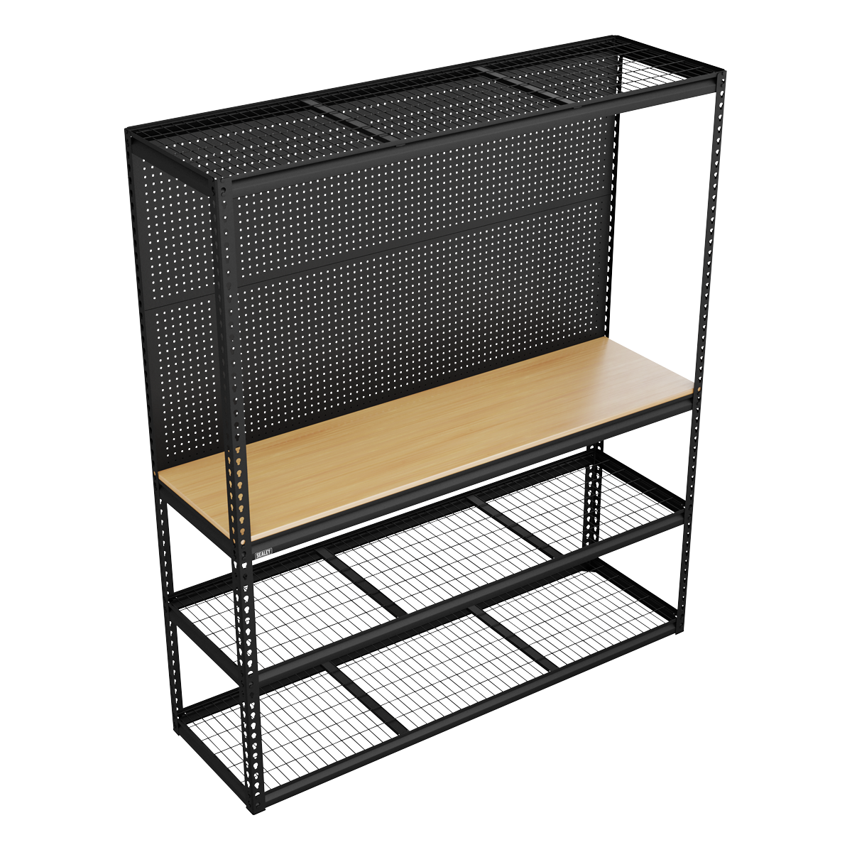 Heavy-Duty Modular Workbench with Racking & Pegboard 1820mm 300kg Capacity Per Level