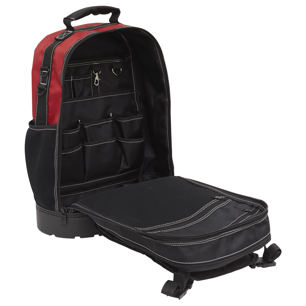 • Main compartment has three zipped pockets and ten open pockets to keep tools organised.