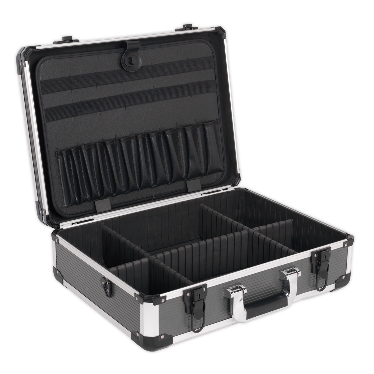 • Versatile tool case with aluminium frame and reinforced composite panels.