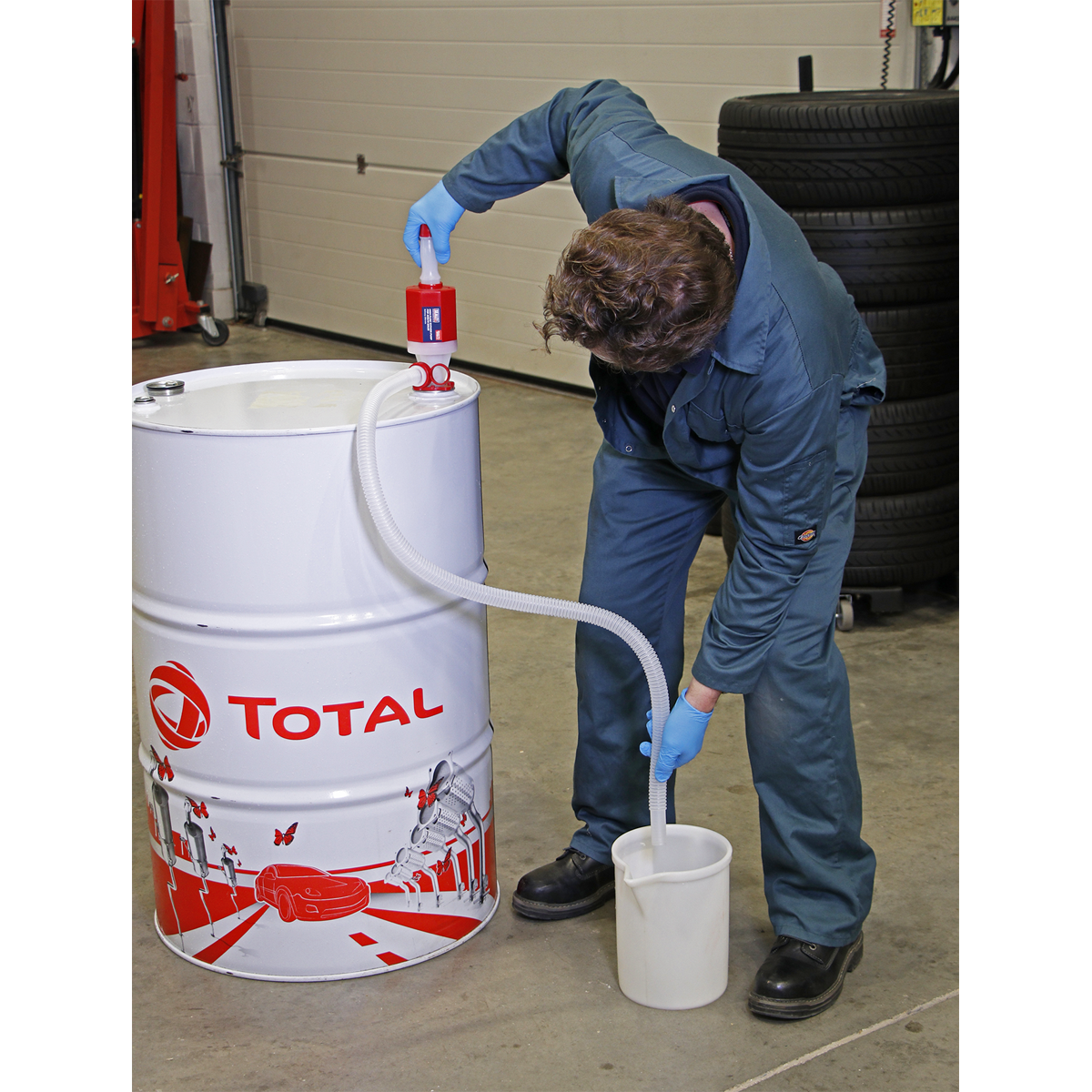 • Equipped with vent cap to stop discharge and flexible corrugated discharge tube.
