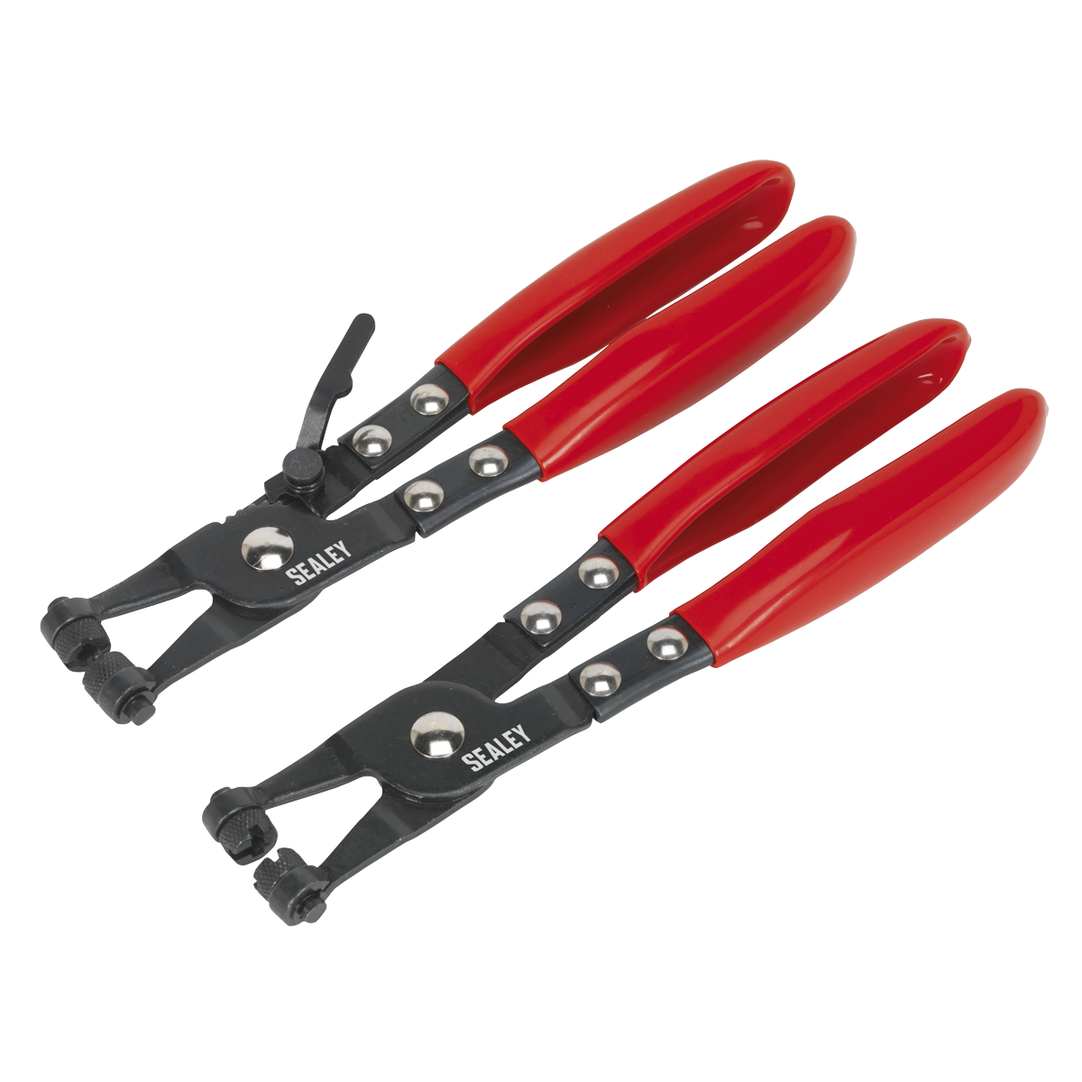 • Pliers with ratchet locking mechanism for ease of use on lower radiator hoses.