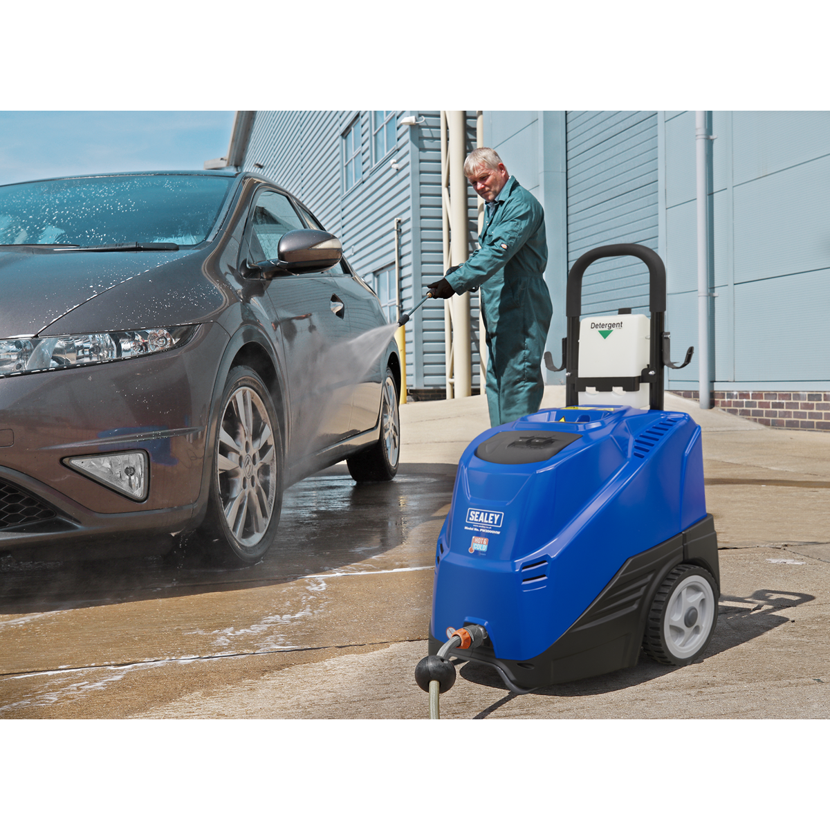 • Professional, heavy-duty hot/cold water pressure washer designed for extensive domestic and light/heavy commercial use.