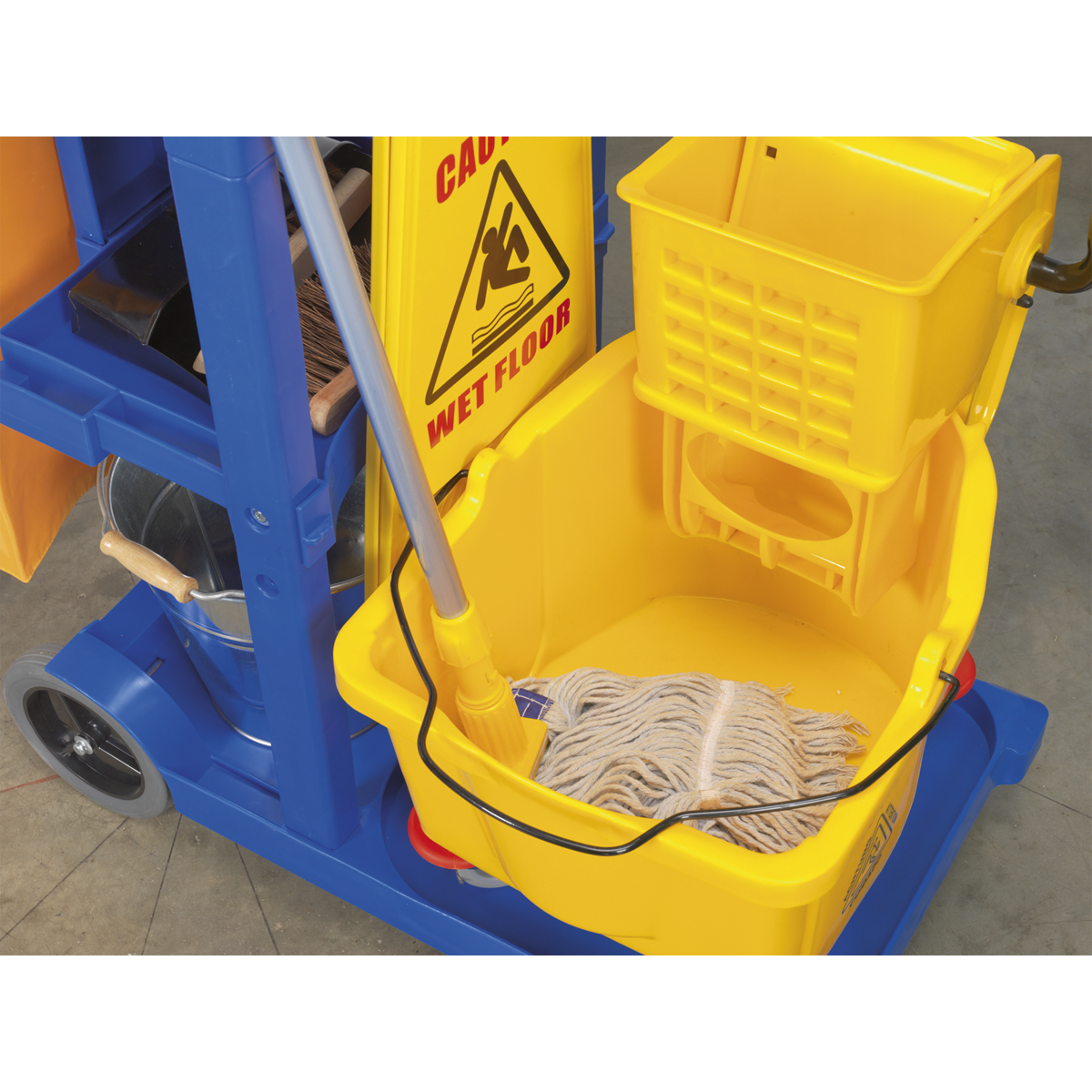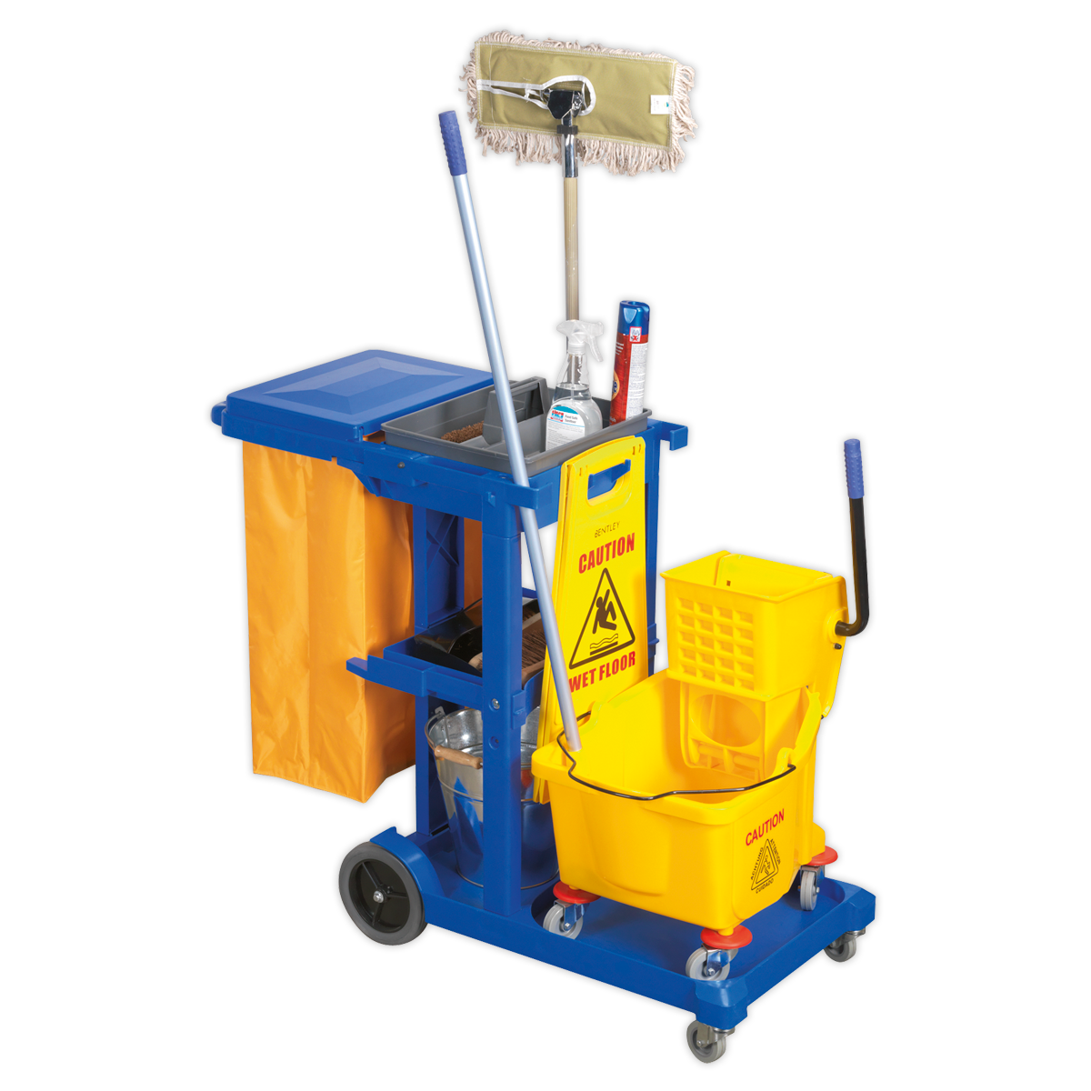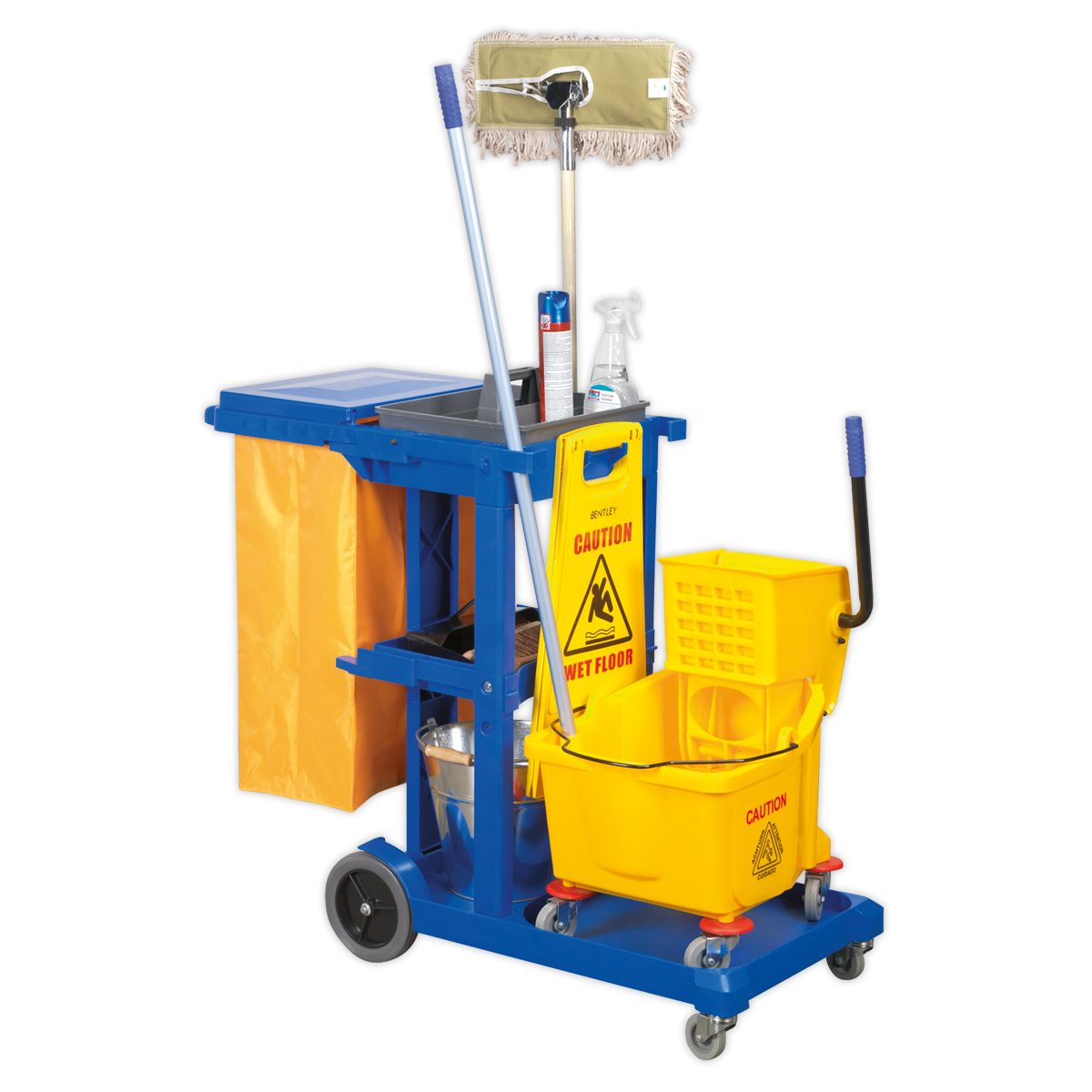 • Designed to accommodate mop buckets, brooms, brushes, cleaning agents and other necessary items.