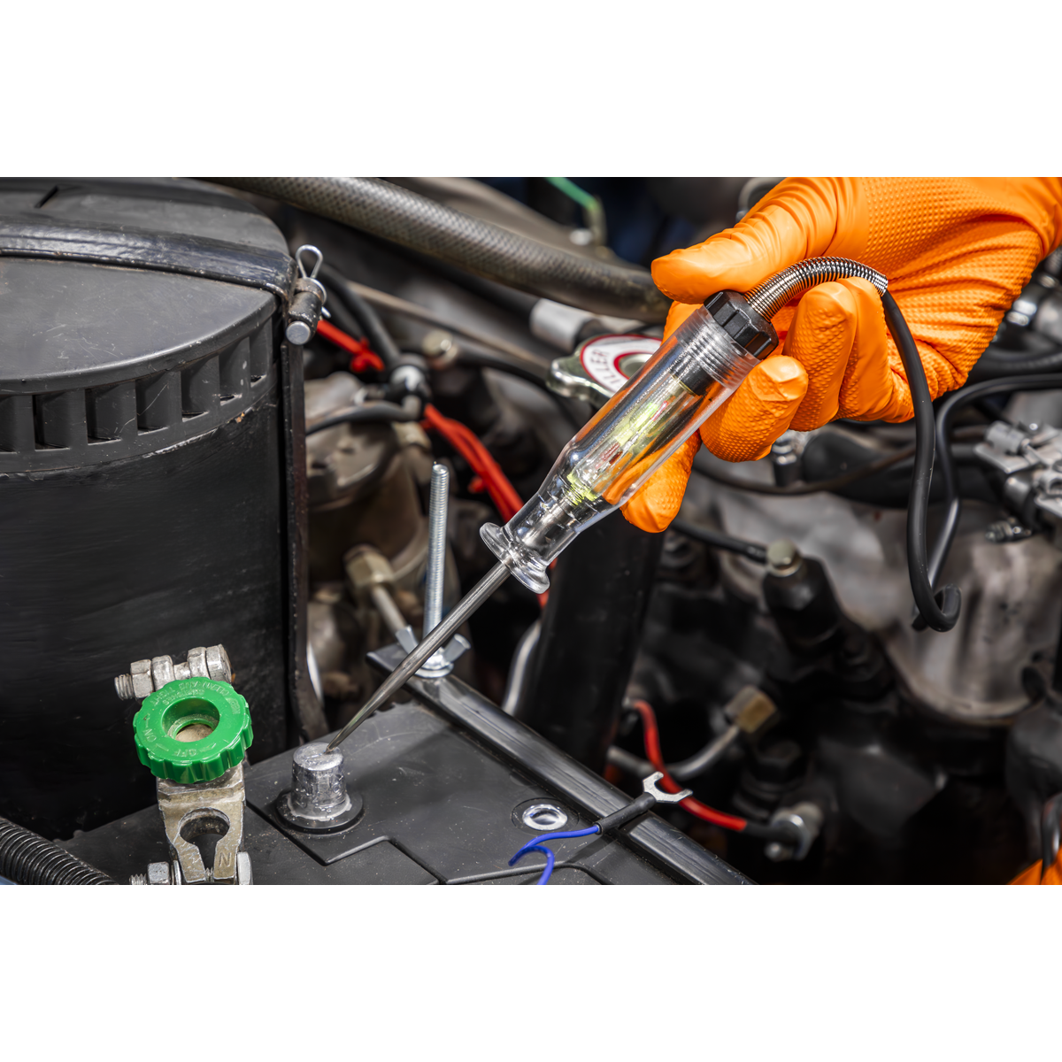 • Probe tool allows continuity and polarity tests to be carried out quickly and efficiently on 6, 12 and 24V systems.