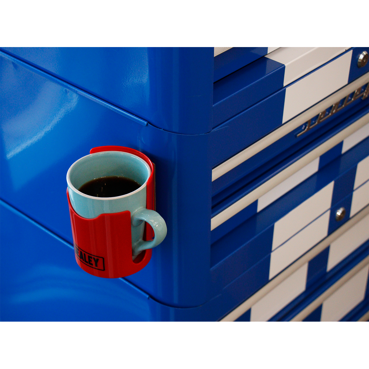• Magnetic durable plastic cup/can holder, designed to be attached to any flat ferrous metal surface such as toolboxes and trolleys.