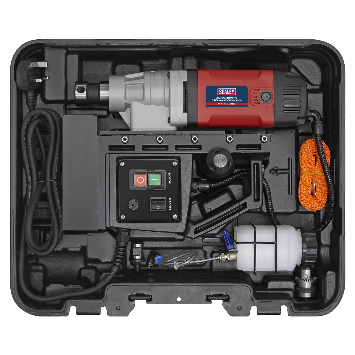 • Includes safety fixing strap, 10mm twist drill chuck and integrated coolant system to extend the life of cutters and increase the quality of the cut.