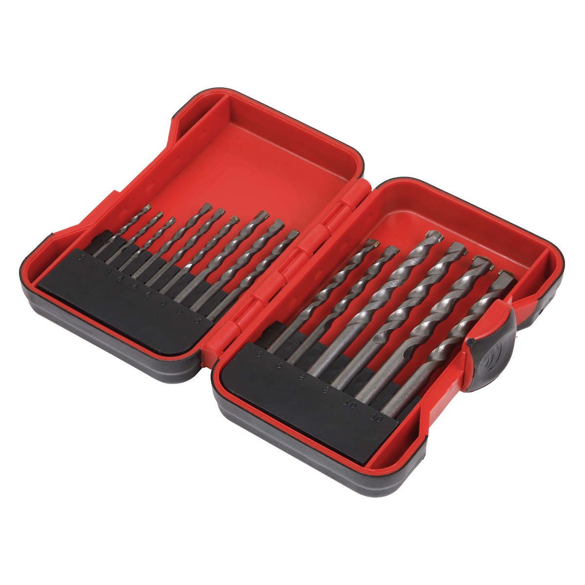 • Set consists of 15 tungsten steel masonry drills.
