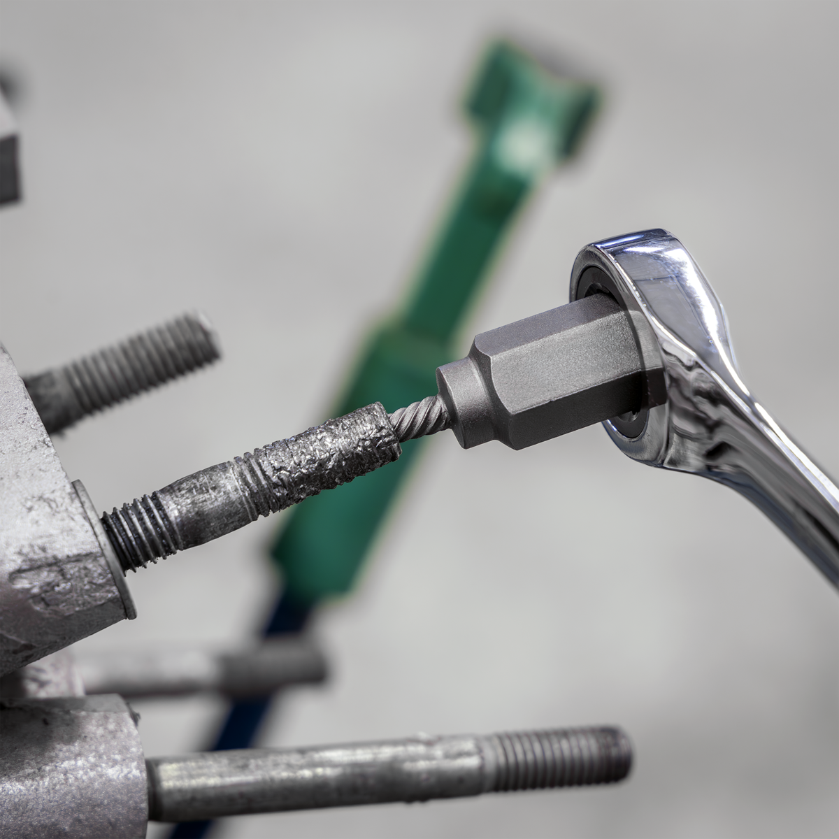 • REVERSE SPIRAL FLUTES – Allows for secure grip on damaged bolts.