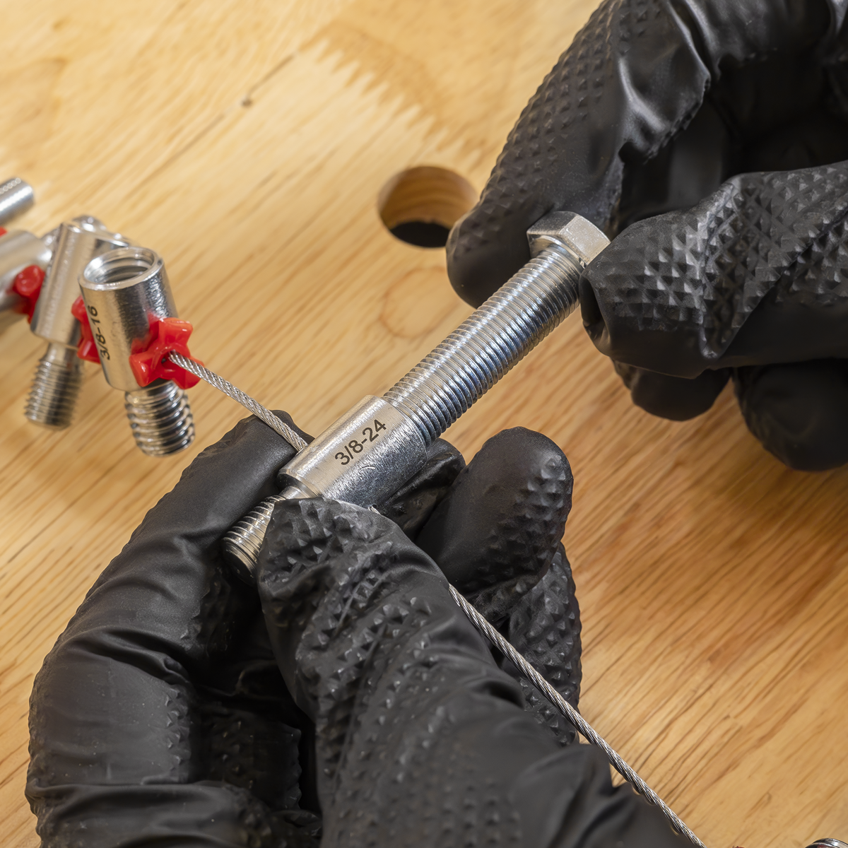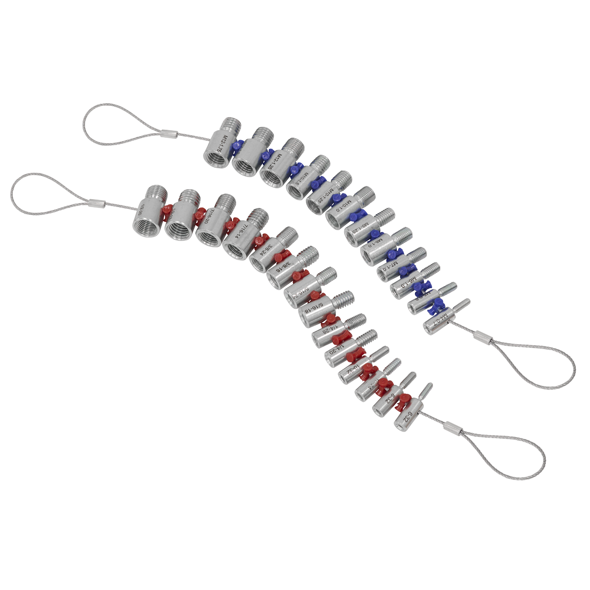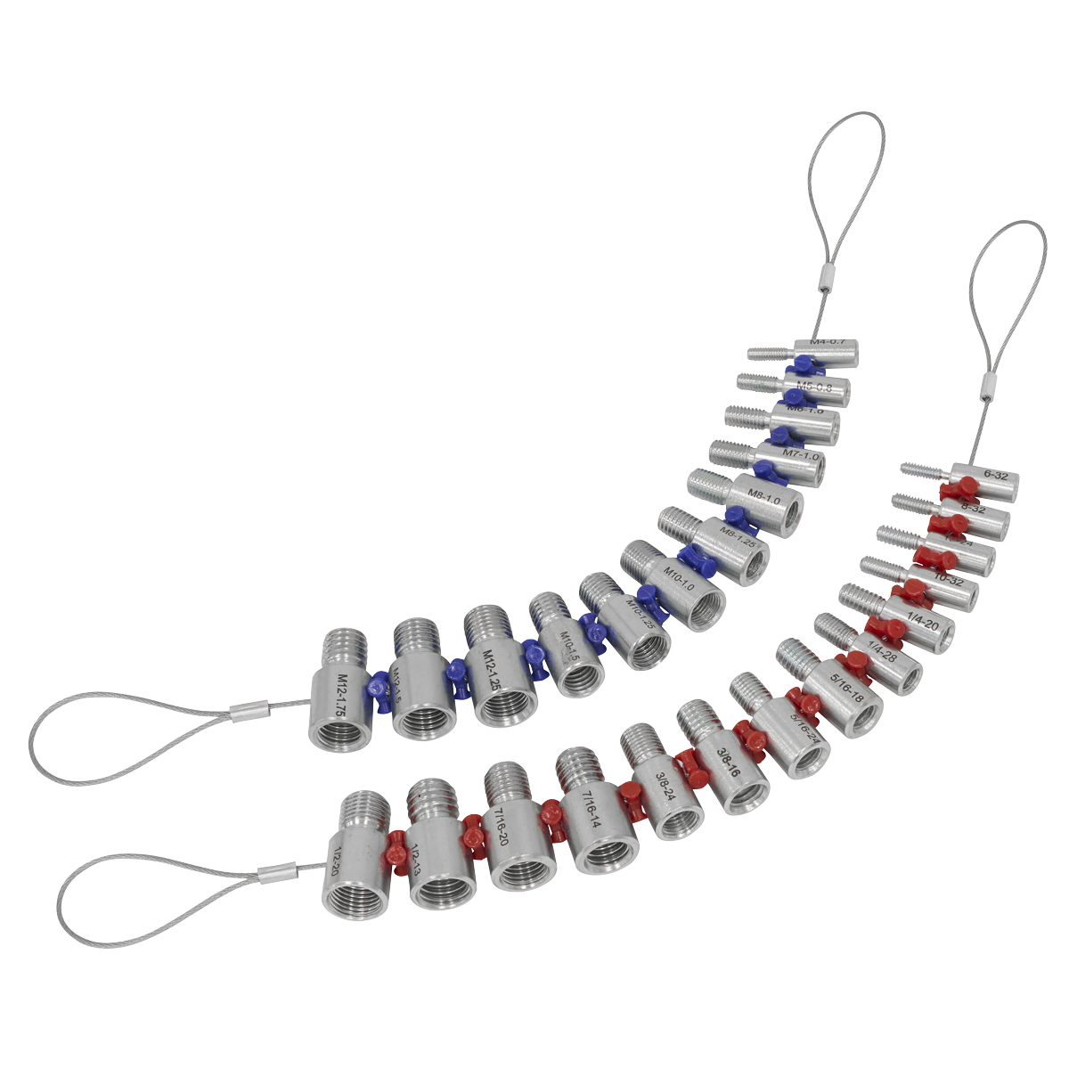 • Thread checkers on a wire lanyard for quick and precise measuring.