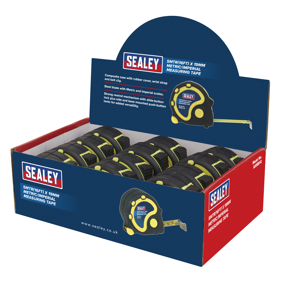 Metric/Imperial Rubber Tape Measure 5m(16ft) x 19mm - Display Box of 12