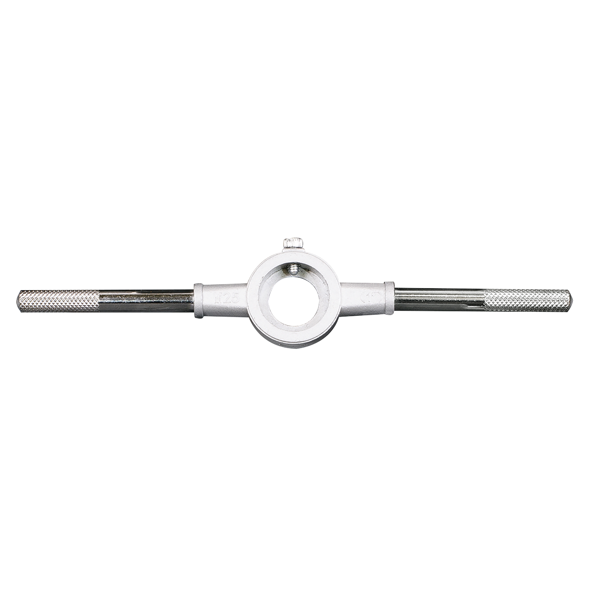 • Set includes die handle, double end tap wrench, T-handled tap wrench, metric screw pitch gauge, imperial screw pitch gauge and slotted 5mm screwdriver.
