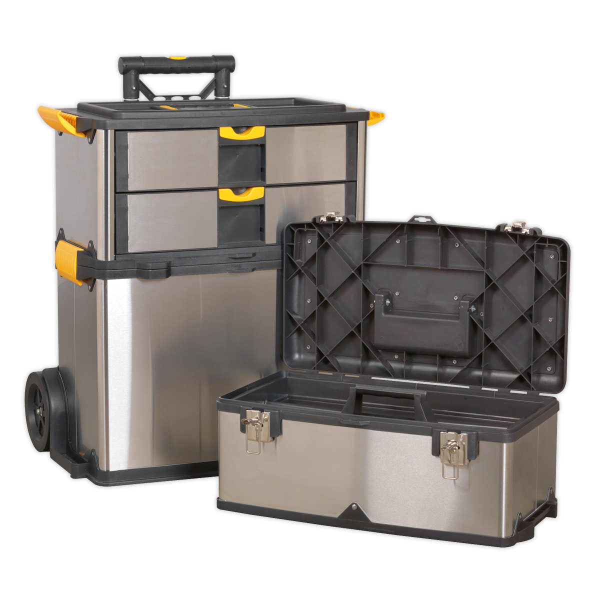 Mobile Stainless Steel/Composite Toolbox with 3 Compartments
