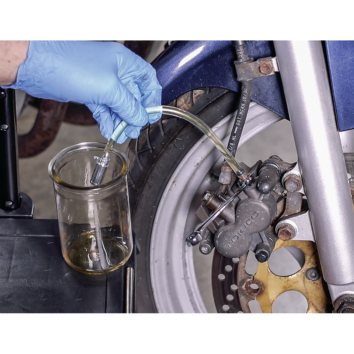 • The kit utilises a small weighted non-return valve and a connector hose that attaches to the scooter or motorcycle bleed nipple.