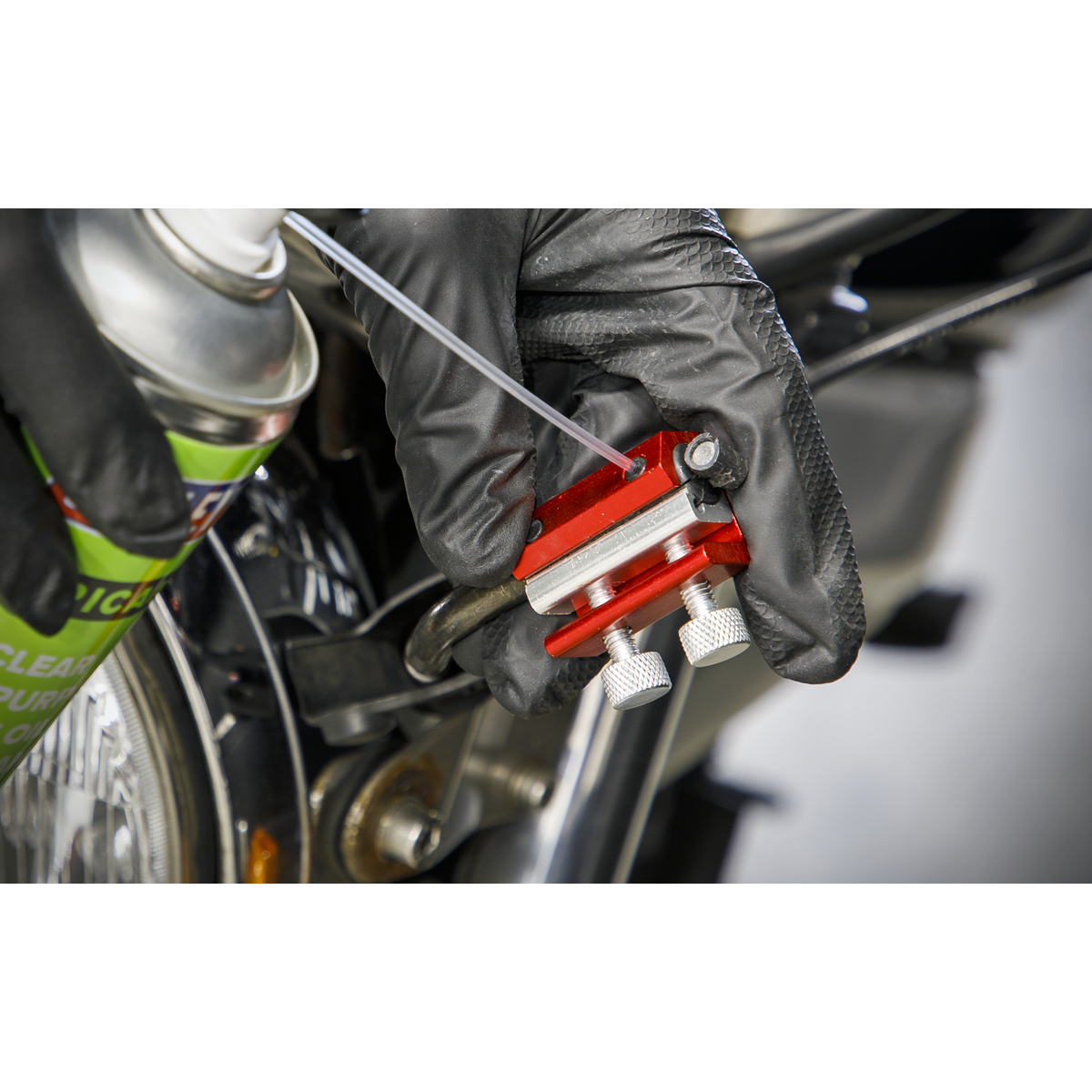 • Twin-clamp cable oiler for use with spray type silicone or oil on motorcycle cables.