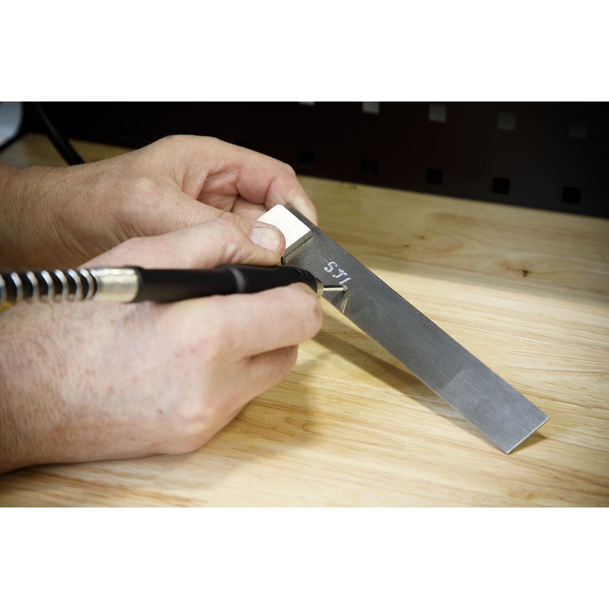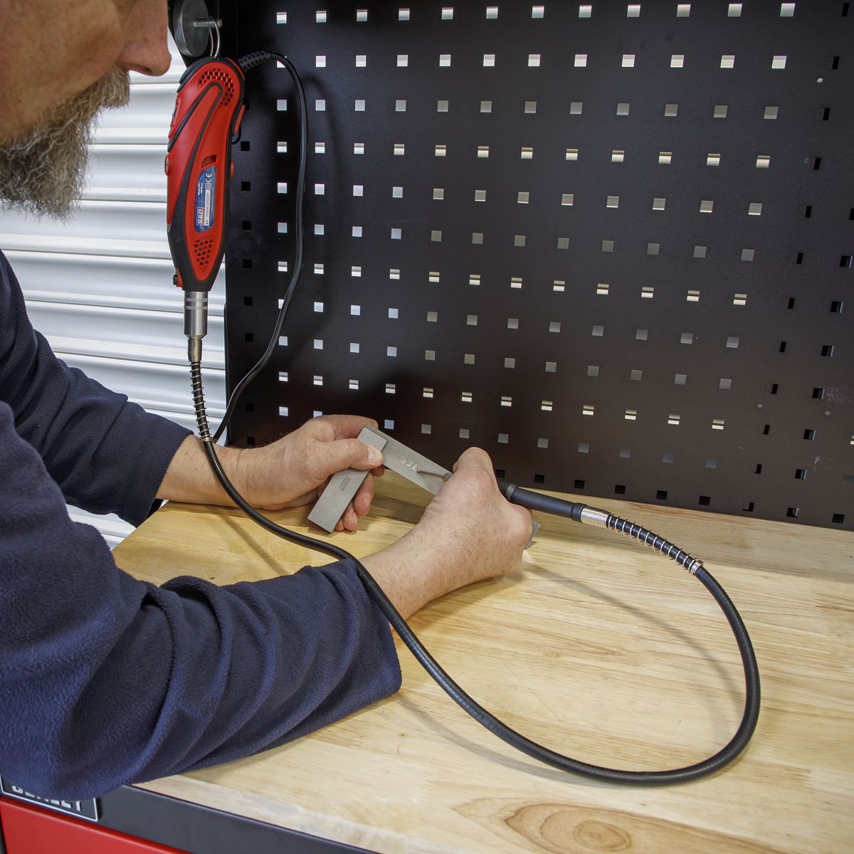 • Supplied with a full range of tips, wheels, sanding discs/bands, dressing stone, chuck spanner and flexible rotary shaft.