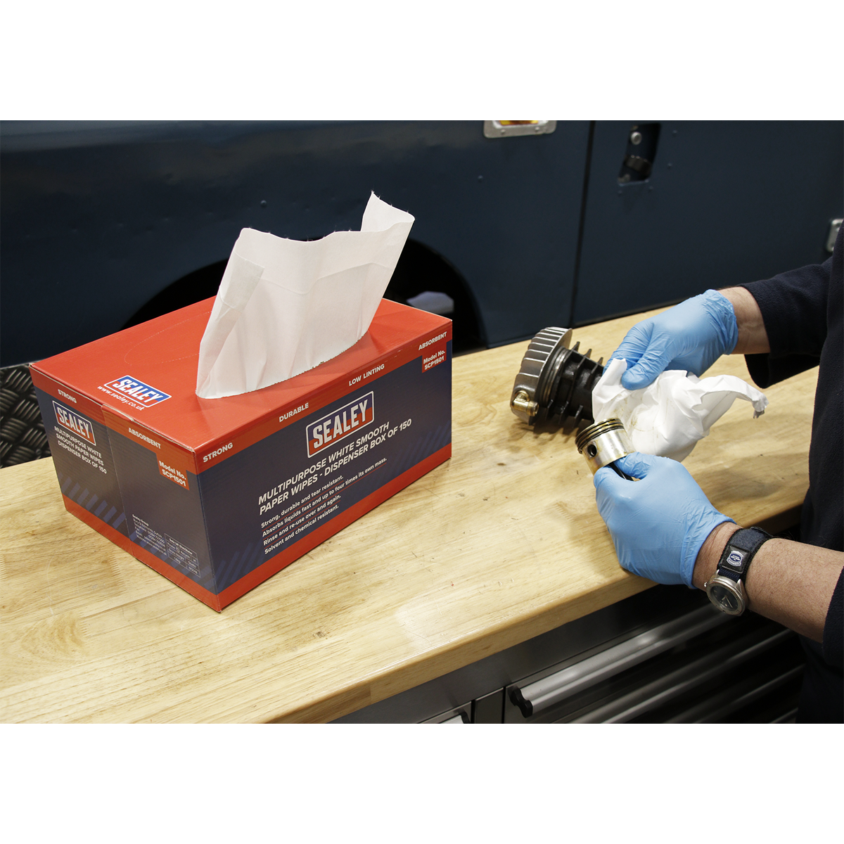 Multipurpose Smooth White Paper Wipes 73gsm - Dispenser Box of 150 Sheets