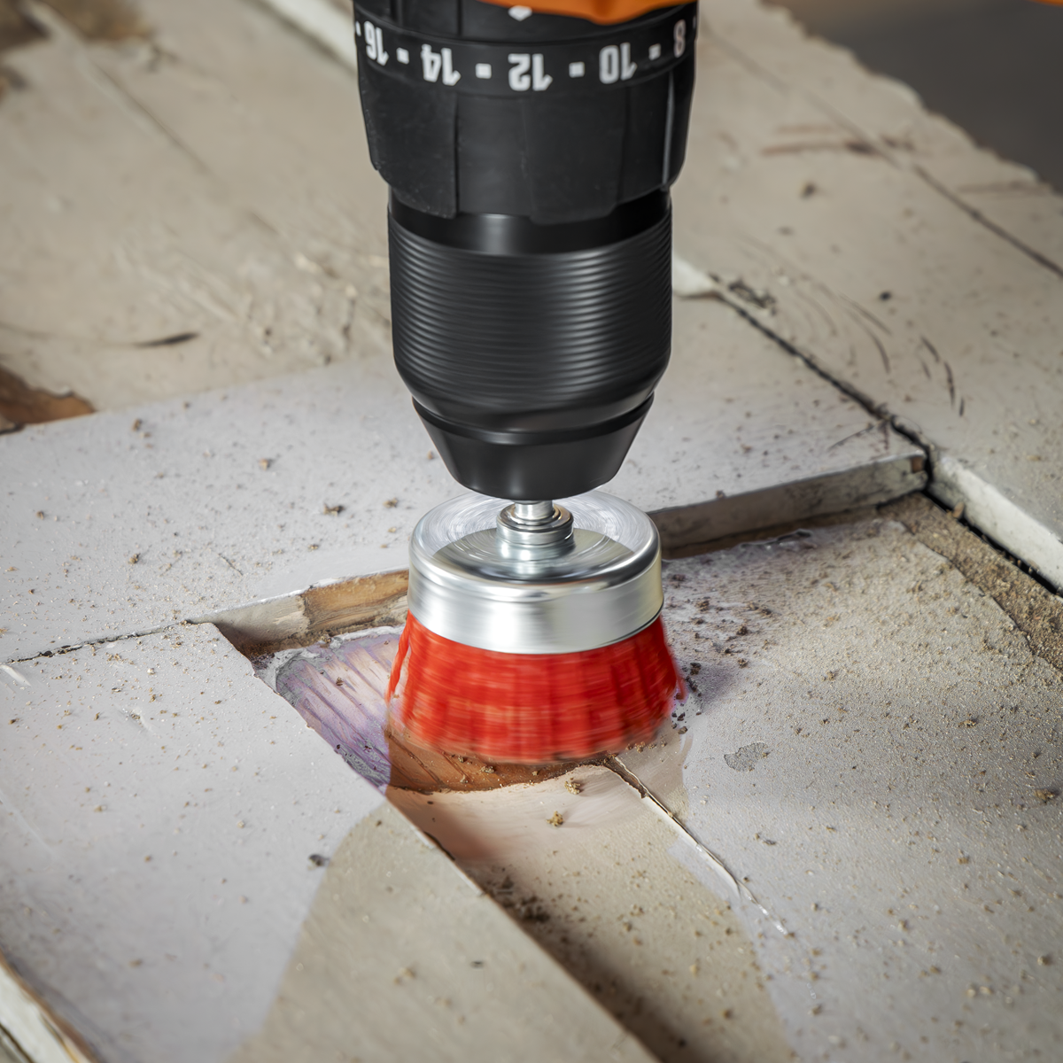 • NON-SPARKING - Nylon filament brush contains an abrasive grain designed for non-sparking application.