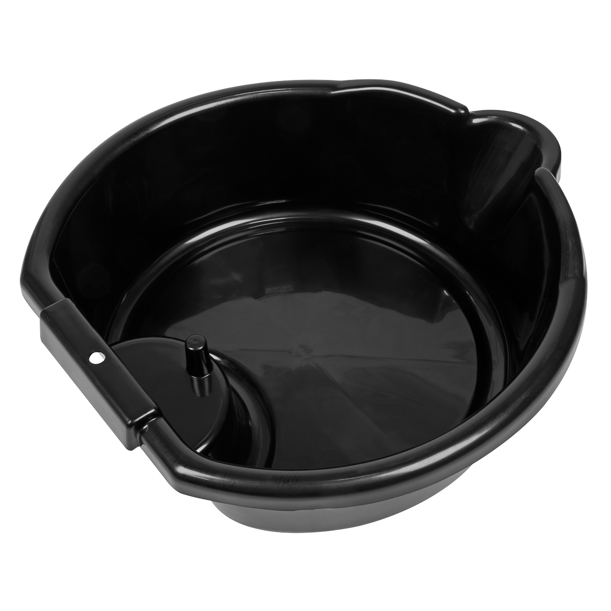 • Includes pouring lip, hanging hole and back shelf with protruding stub for draining oil filters.