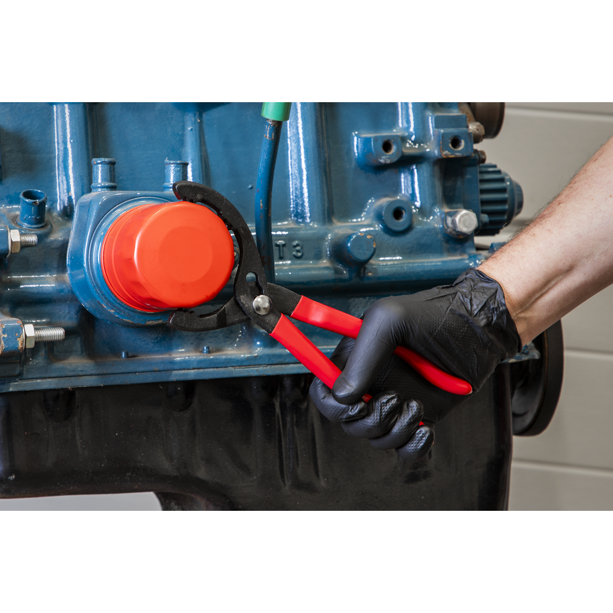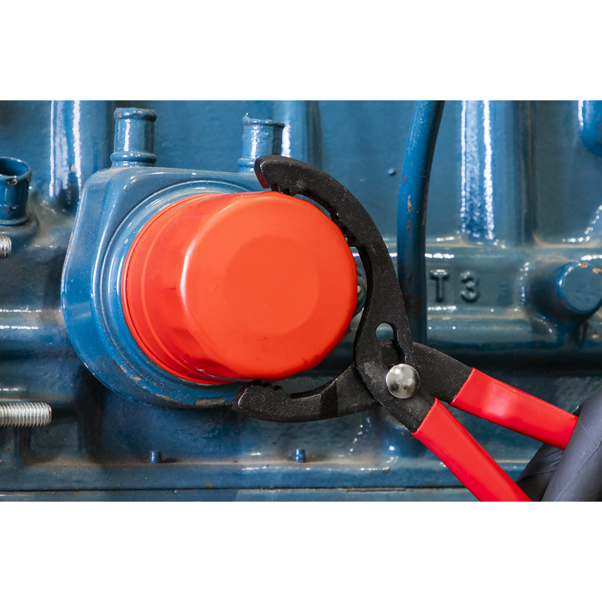 • SERRATED JAWS - With long handles for extra grip on oily filters.