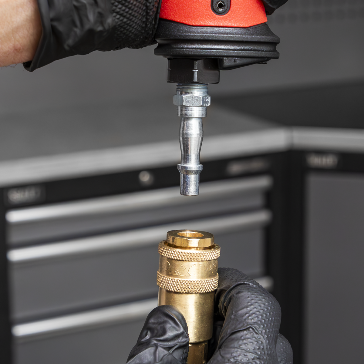 • BUILT IN SAFETY CHOKE - Allows air to vent slowly when disconnected from coupling preventing hose whip.