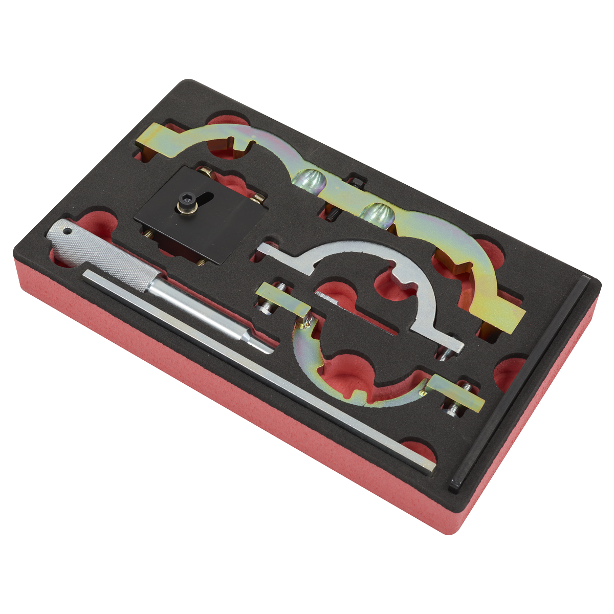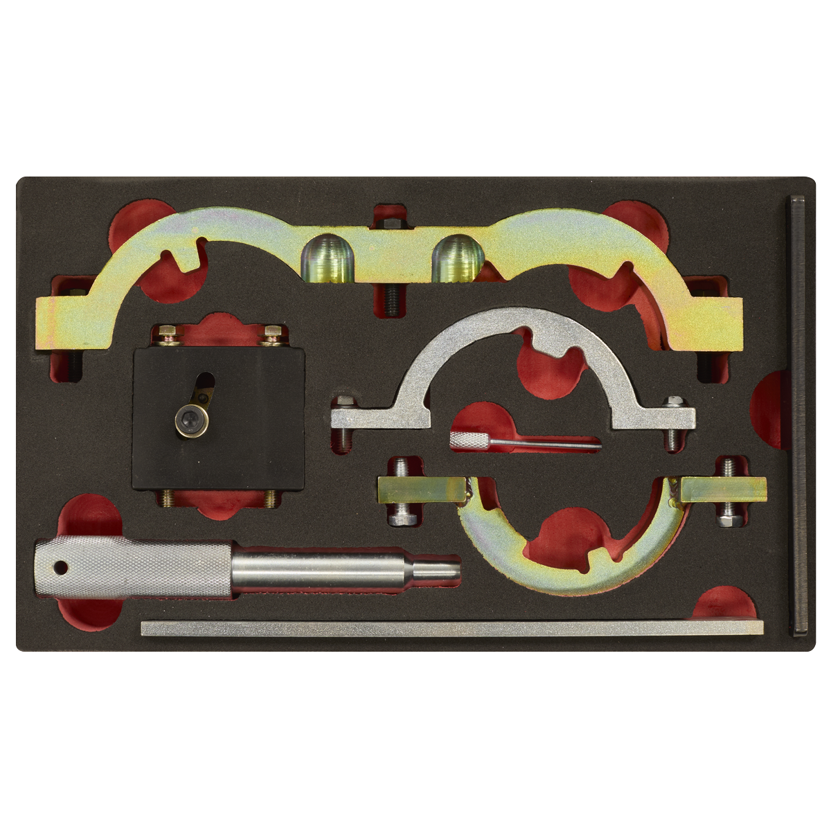 • Includes the necessary tools for setting and locking the camshafts and crankshaft.