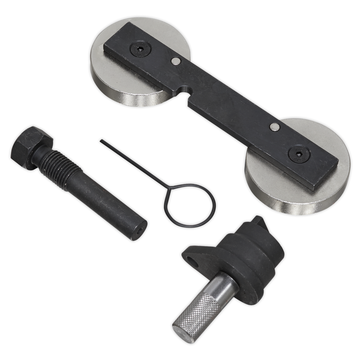 • Kit contains essential tools for crankshaft TDC positioning, camshaft setting and tensioner locking.