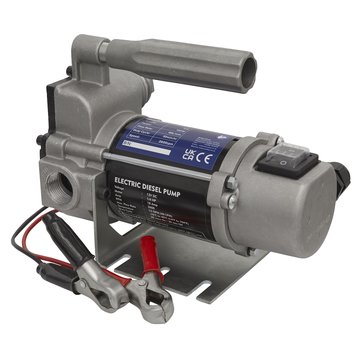 • Includes on/off switch, carry handle, hose clamps (x4), hose tails (x3), mounting plate, PTFE tape and suction hose filter.