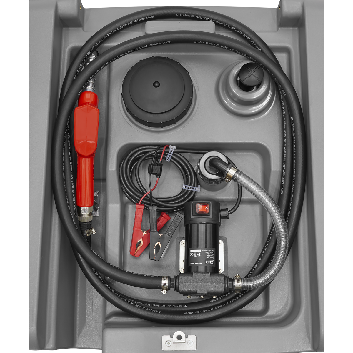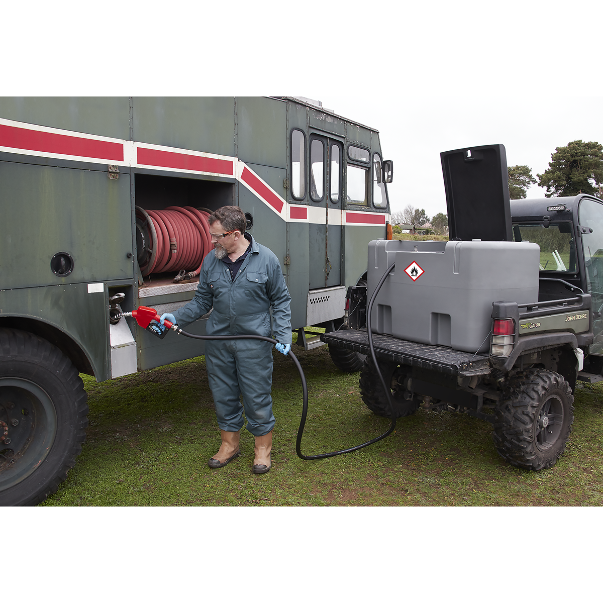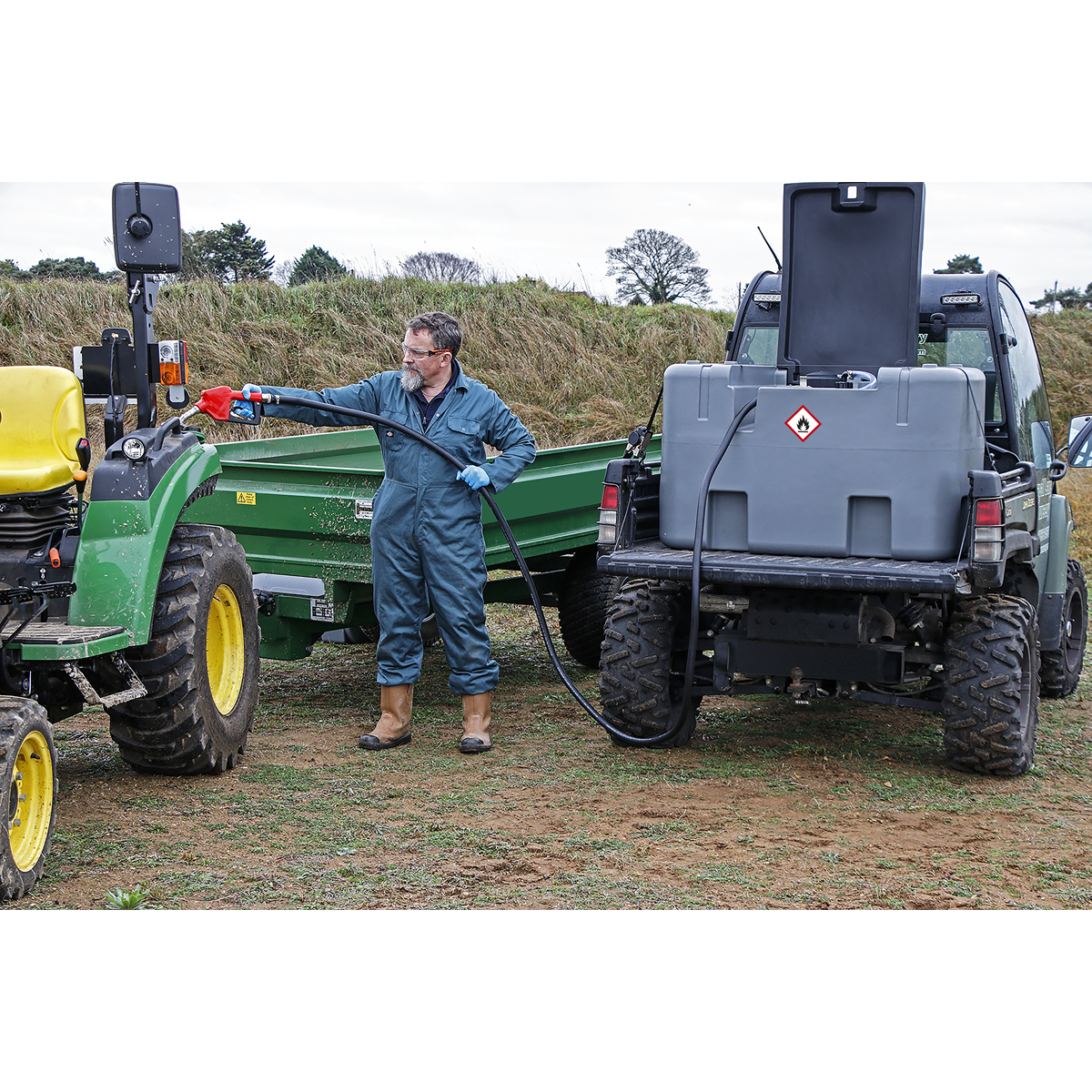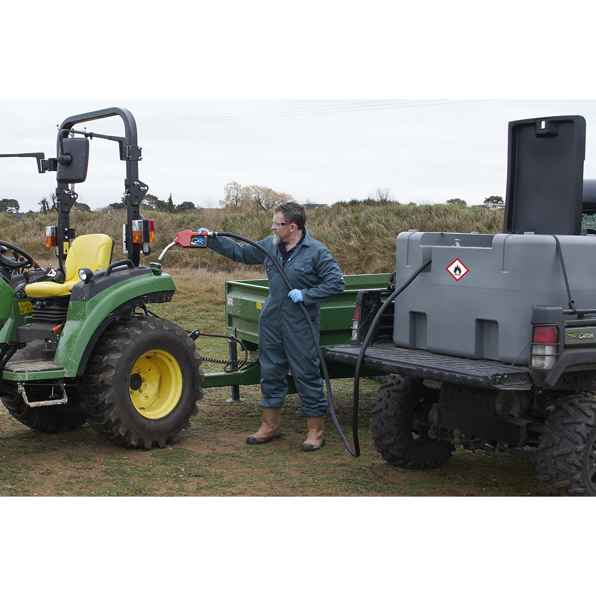 • POWERED - Supplied with 12V electric pump, 4m electric cable and clamps, and a 4m delivery hose with automatic fuel nozzle.