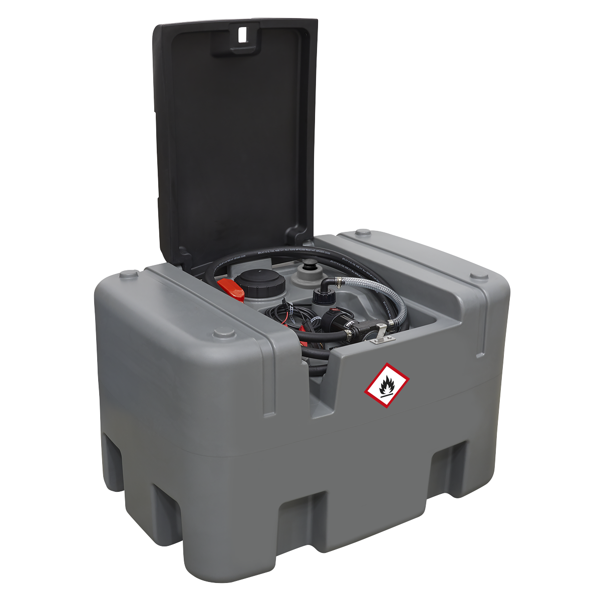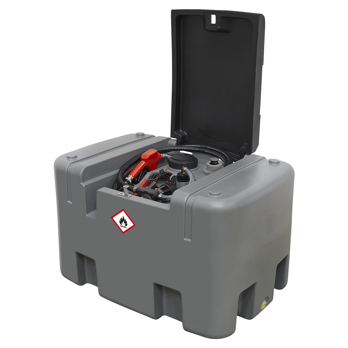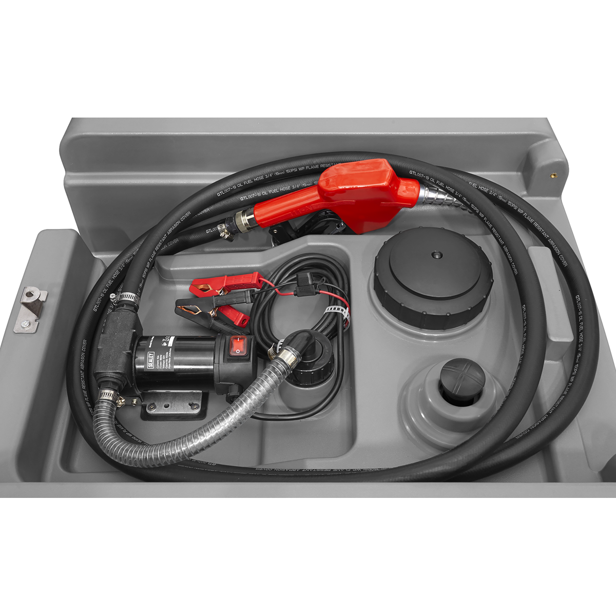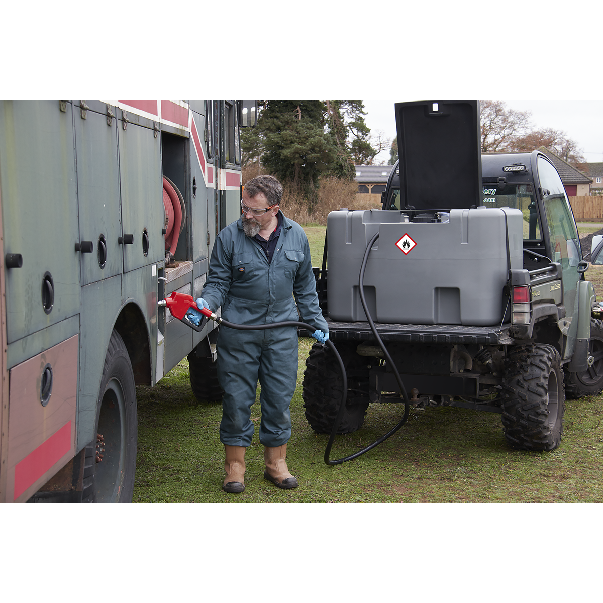 • POWERED - Supplied with 12V electric pump, 4m electric cable and clamps, and a 4m delivery hose with automatic fuel nozzle.