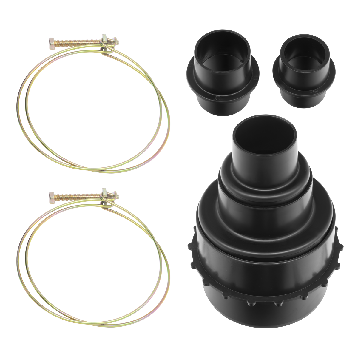• ADAPTOR SET - Five different sized adaptors (105, 70, 45, 40 and 35mm) to allow fixing to extraction ports on most drills, saws and sanders.