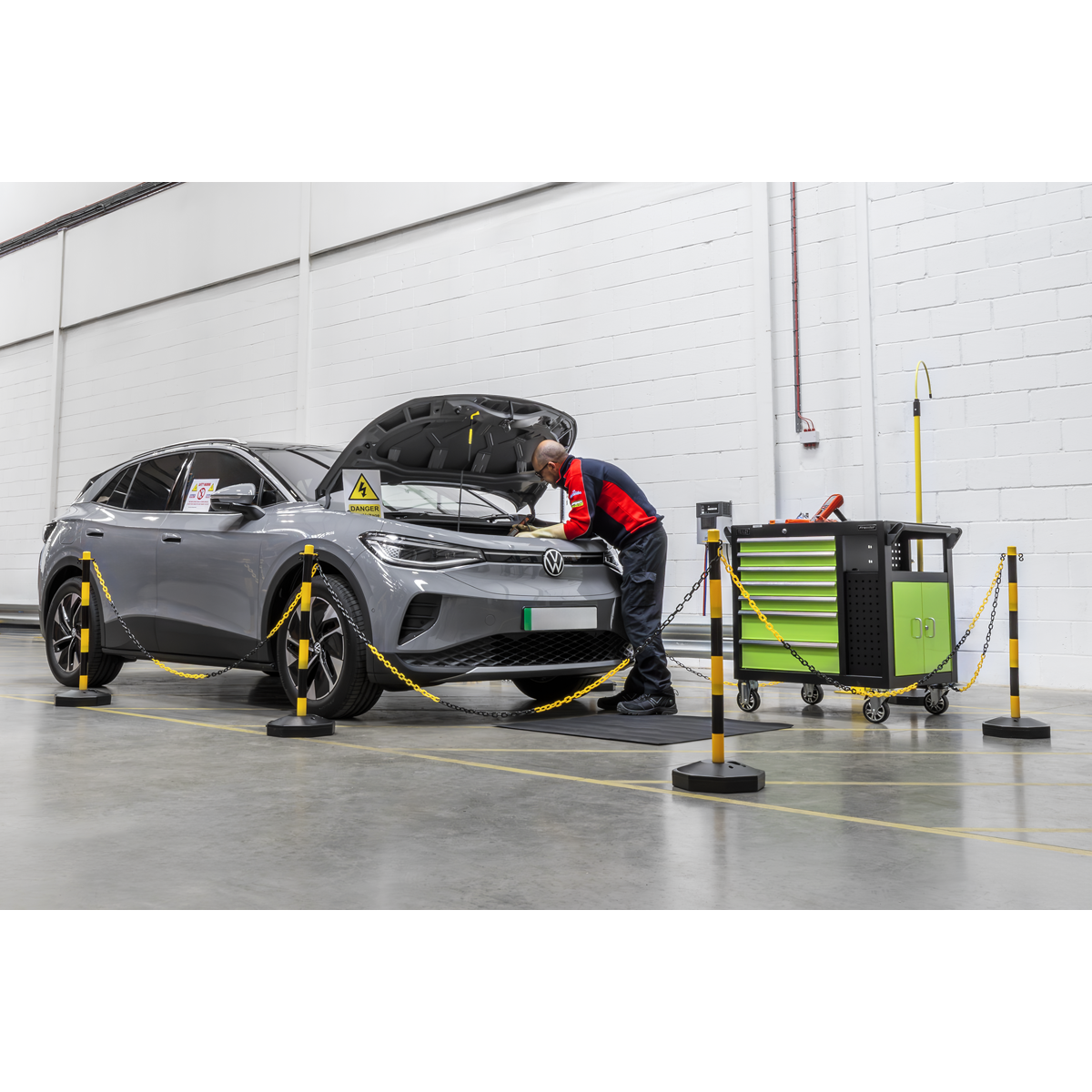 • Highly visible post and chain kit ideal for creating a temporary safety barrier when working on hybrid and electric vehicles.