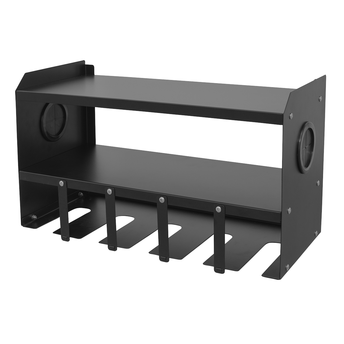 • Wall mounting rack specifically designed for power tool storage.