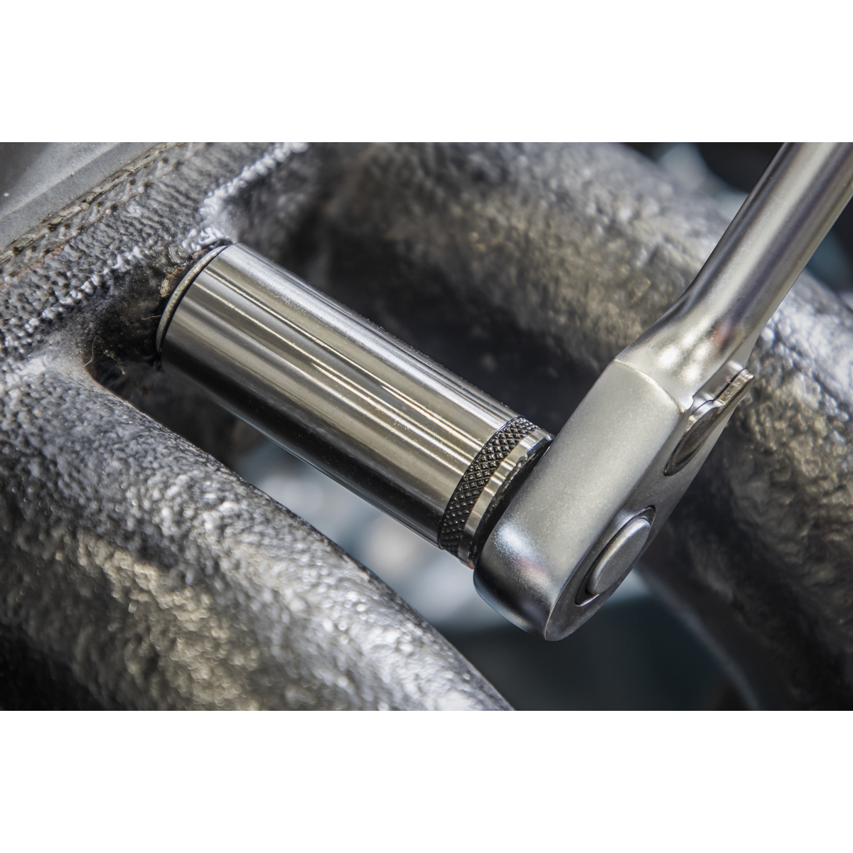 • Includes knurled ring for extra grip with oily fingers.