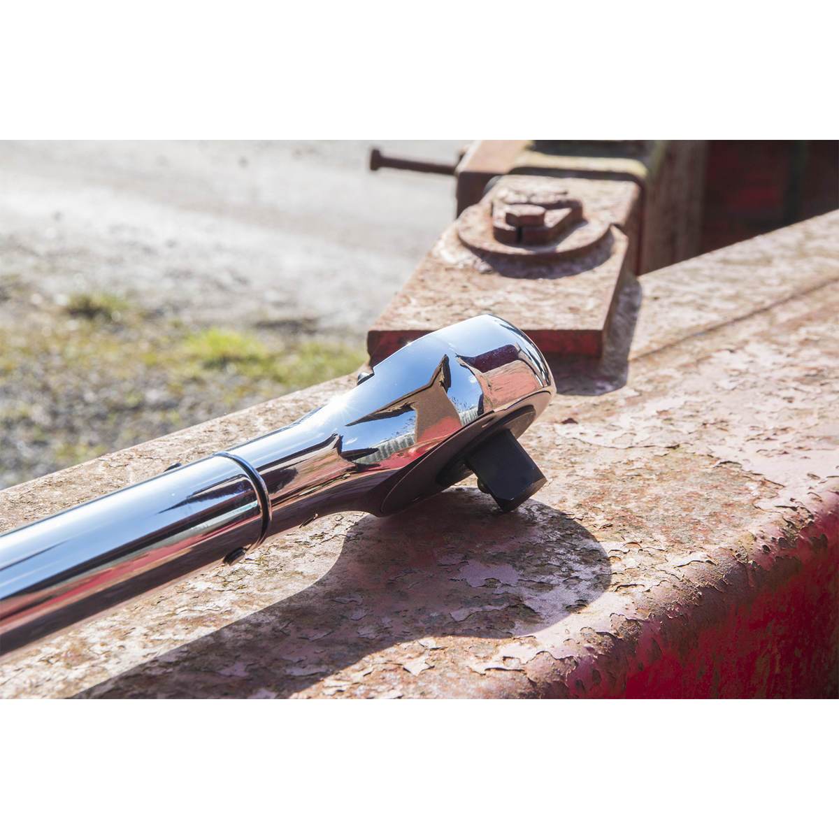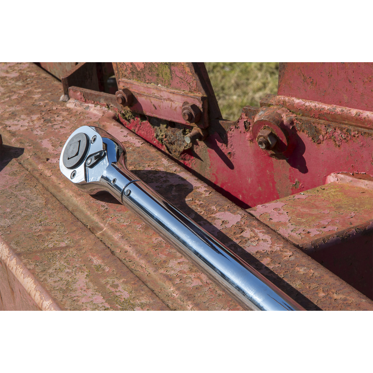 • Ratchet head features flip reverse action and push-through drive to allow torquing either clockwise or anticlockwise.