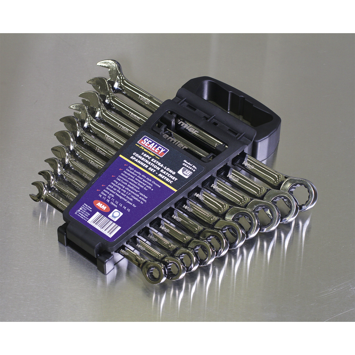 Premier Extra-Long Combination Ratchet Spanner Set 10pc