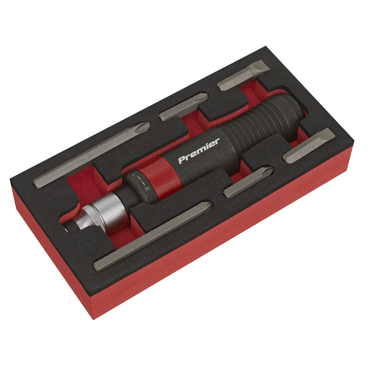 • Supplied with 6-piece Chrome Vanadium steel driver bit set and 8mm hex drive adaptor.