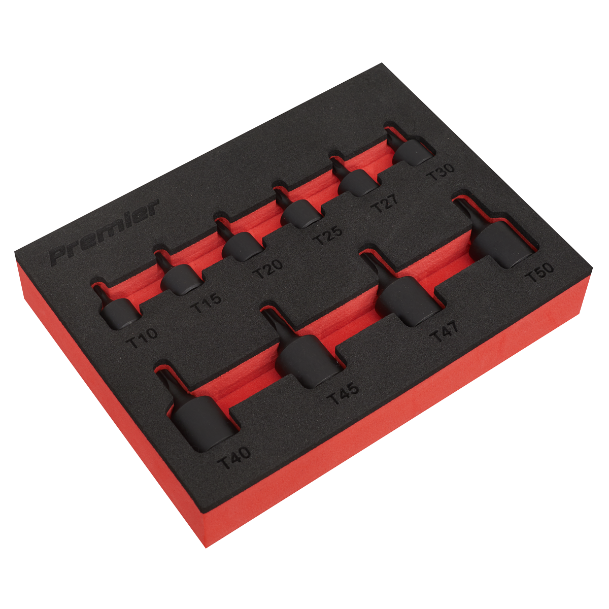 • Contents: 1/4"Sq Drive; T10, T15, T20, T25, T27, T30, 3/8"Sq Drive; T40, T45, T47, T50.