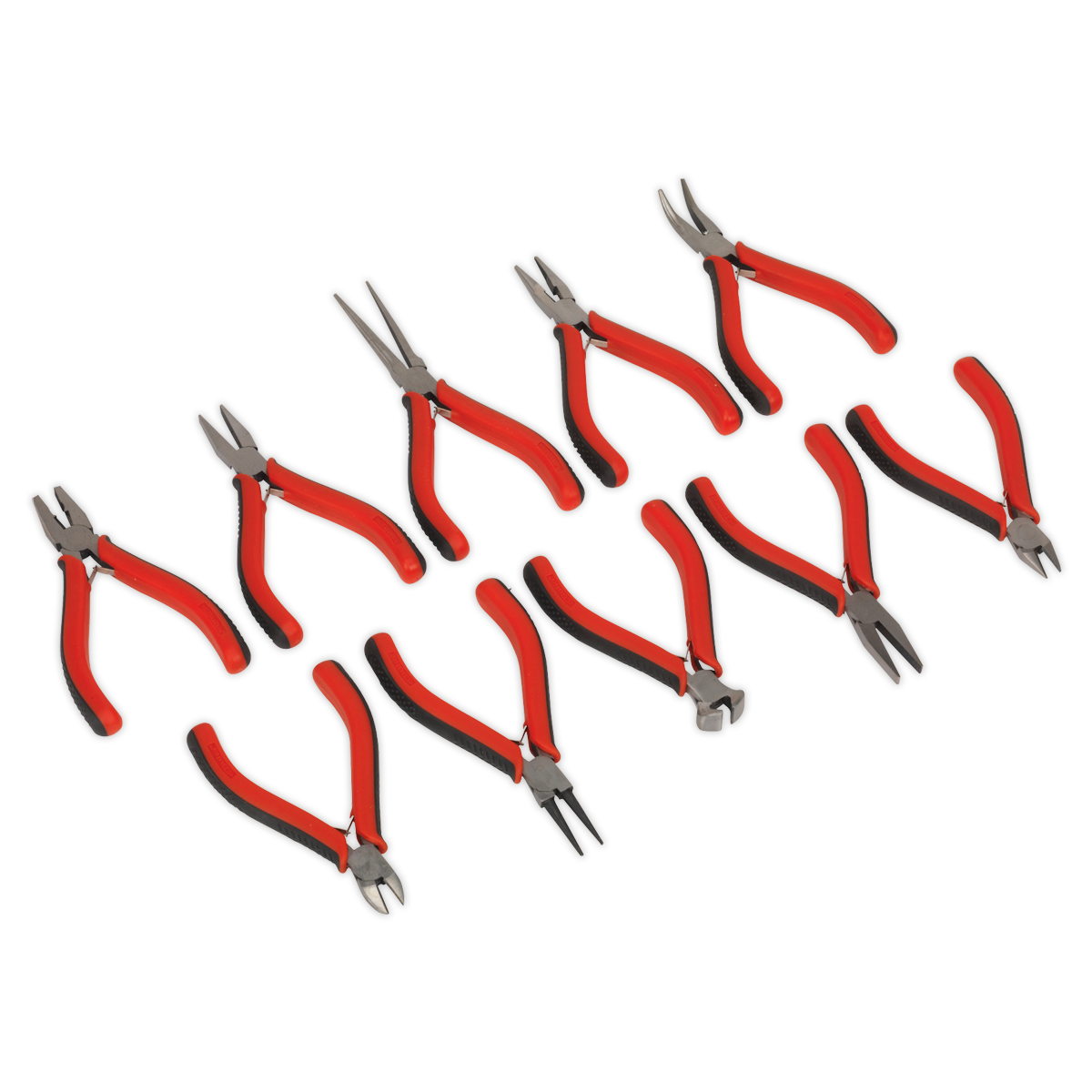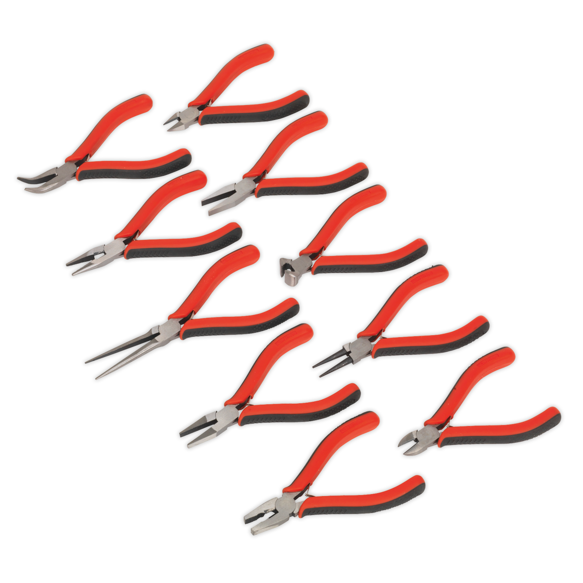 • Contents: 110mm Side Cutter, 125mm Round Nose Pliers, 100mm End Cutter, 125mm Snipe Nose Pliers, 150mm Needle Nose Pliers, 115mm Combination Pliers, 125mm Long Nose Pliers, 120mm Flat Nose Pliers, 110mm Narrow Jaw Diagonal Side Cutter, 120mm Narrow Jaw Flat Nose Pliers.