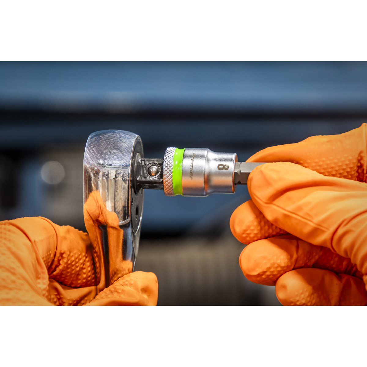 • Knurled rings assist the gripping of the sockets with oily fingers.