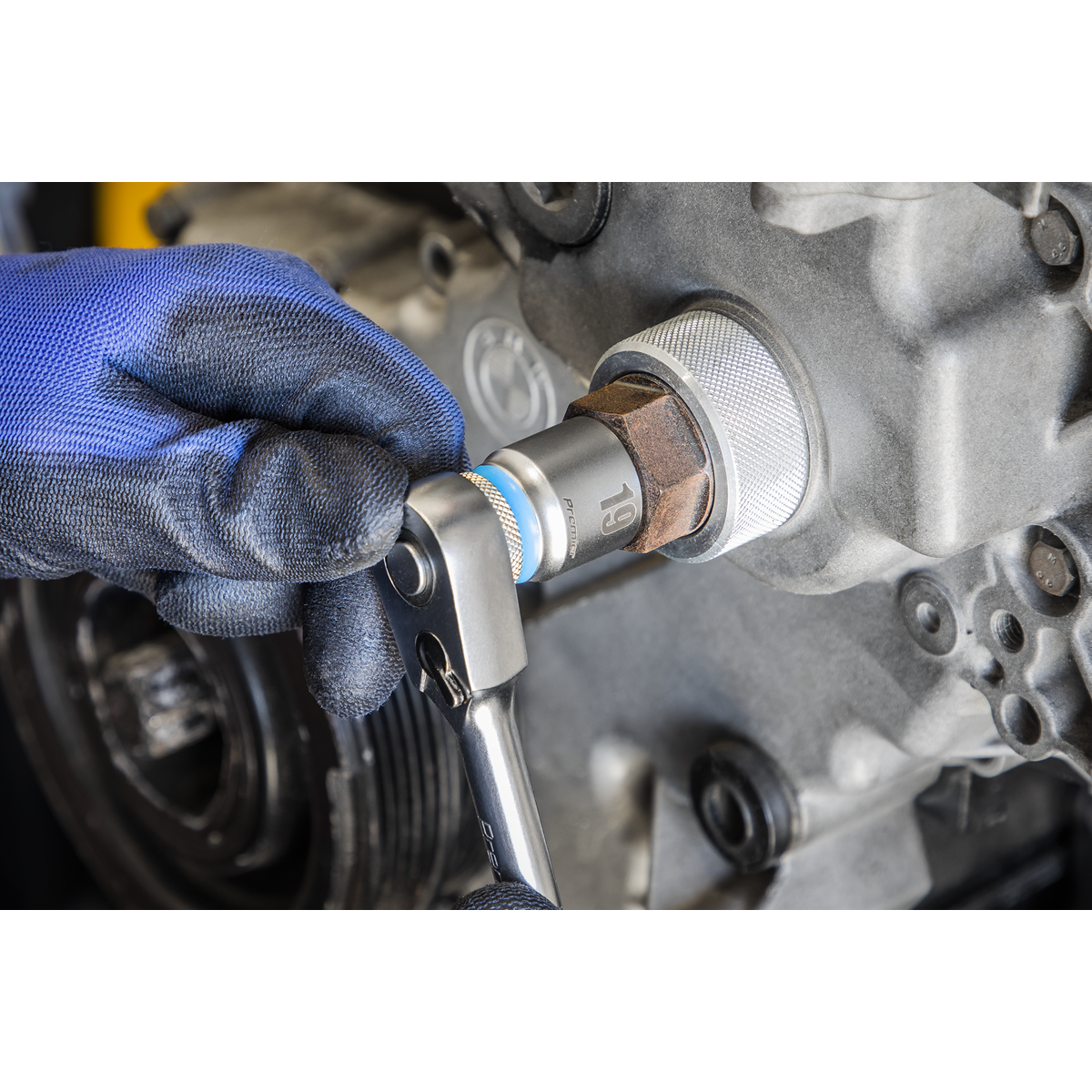 • Knurled rings assist the gripping of the sockets with oily fingers.