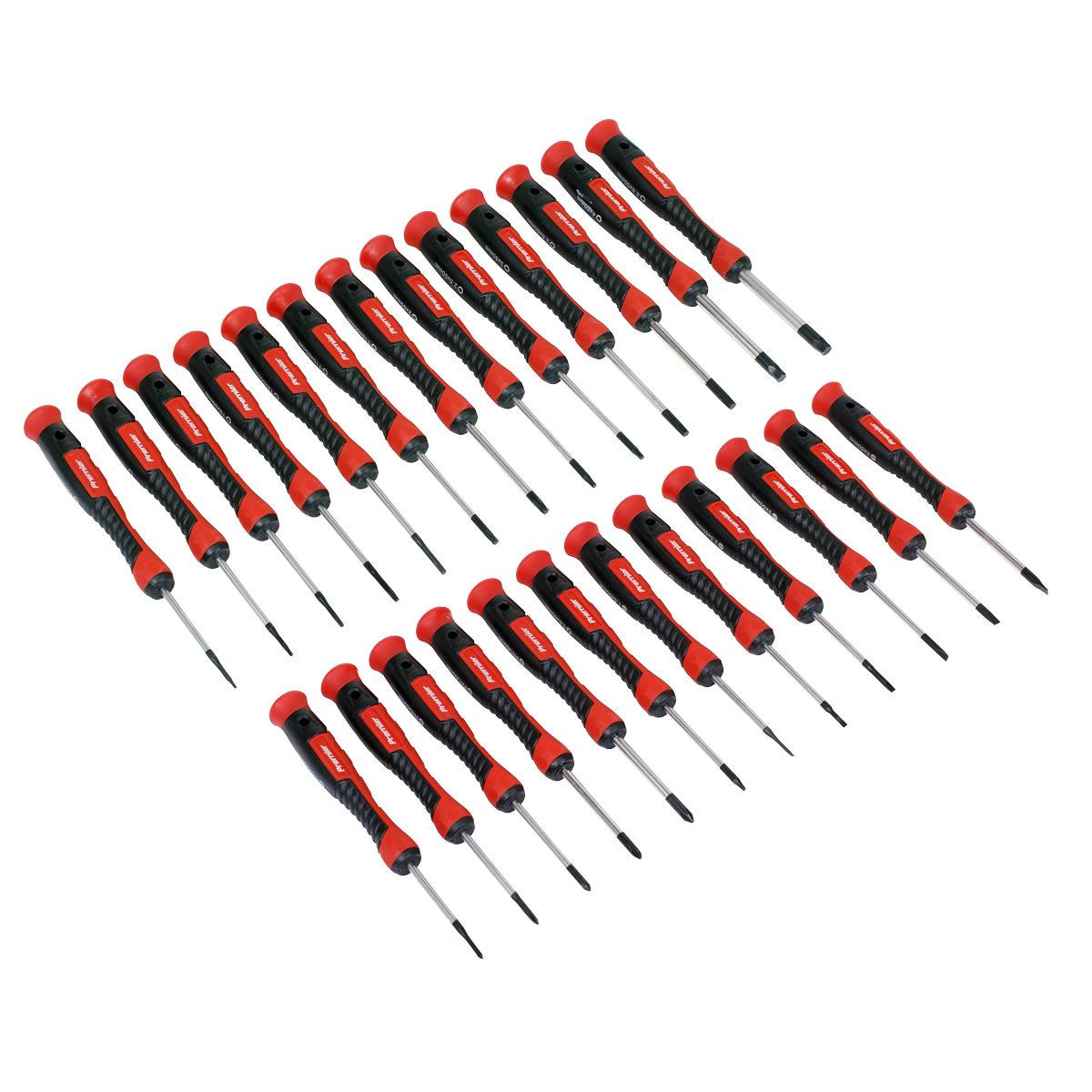 • 25PC SET- Contents Includes Slotted; 1.5, 2, 2.5, 3, 3.5, 4mm, Phillips; #000, #00, #0, #1 x 3.5, #1 x 4, Hex; 1.5, 2, 2.5, 3, 3.5, 4, 4.5mm, TRX-Star*; T5, T6, T7, T8, T9, T10, T15.