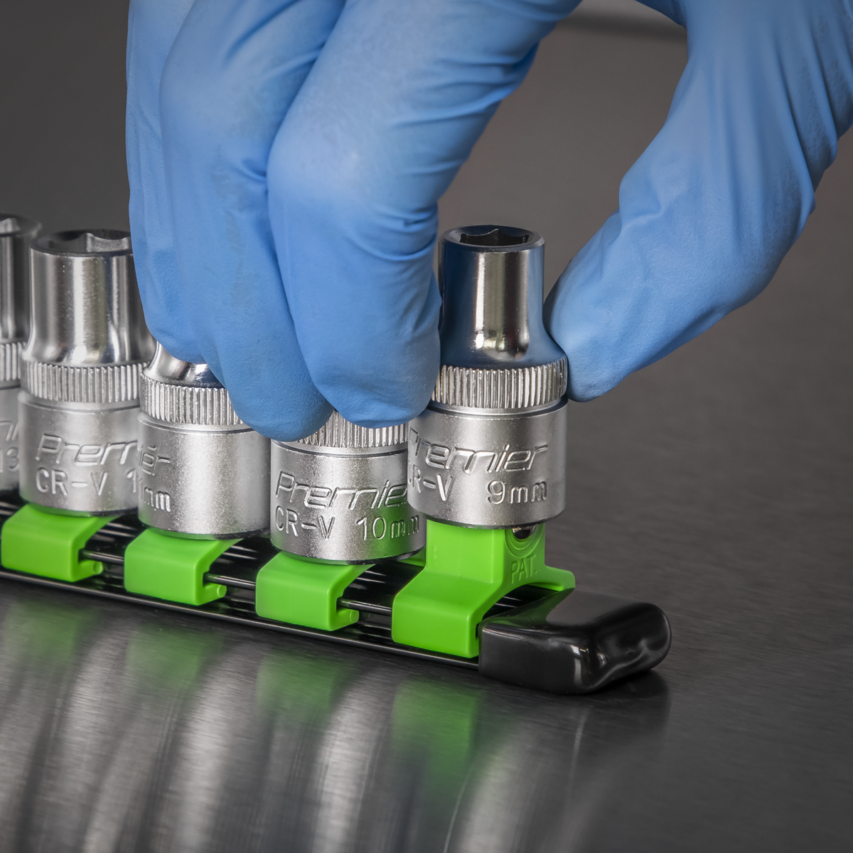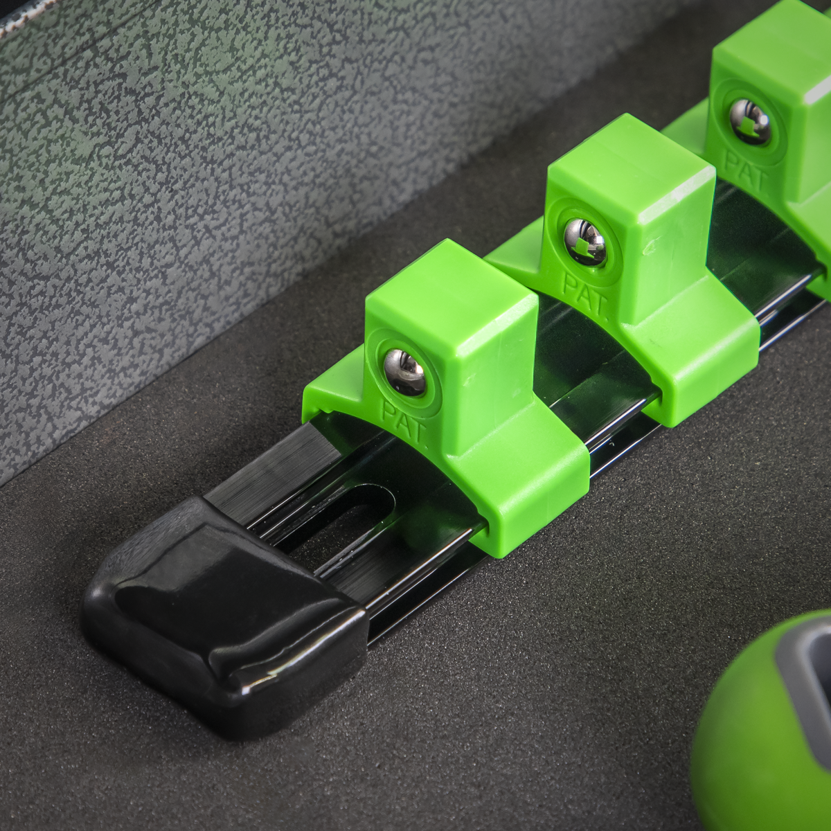 Premier Socket Retaining Rail with 16 Clips 1/2"Sq Drive - Hi-Vis Green