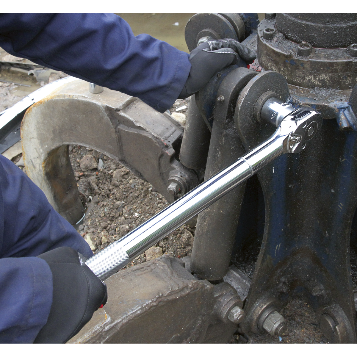 • Features extendable pear-head flip reverse ratchet wrench with quick release.