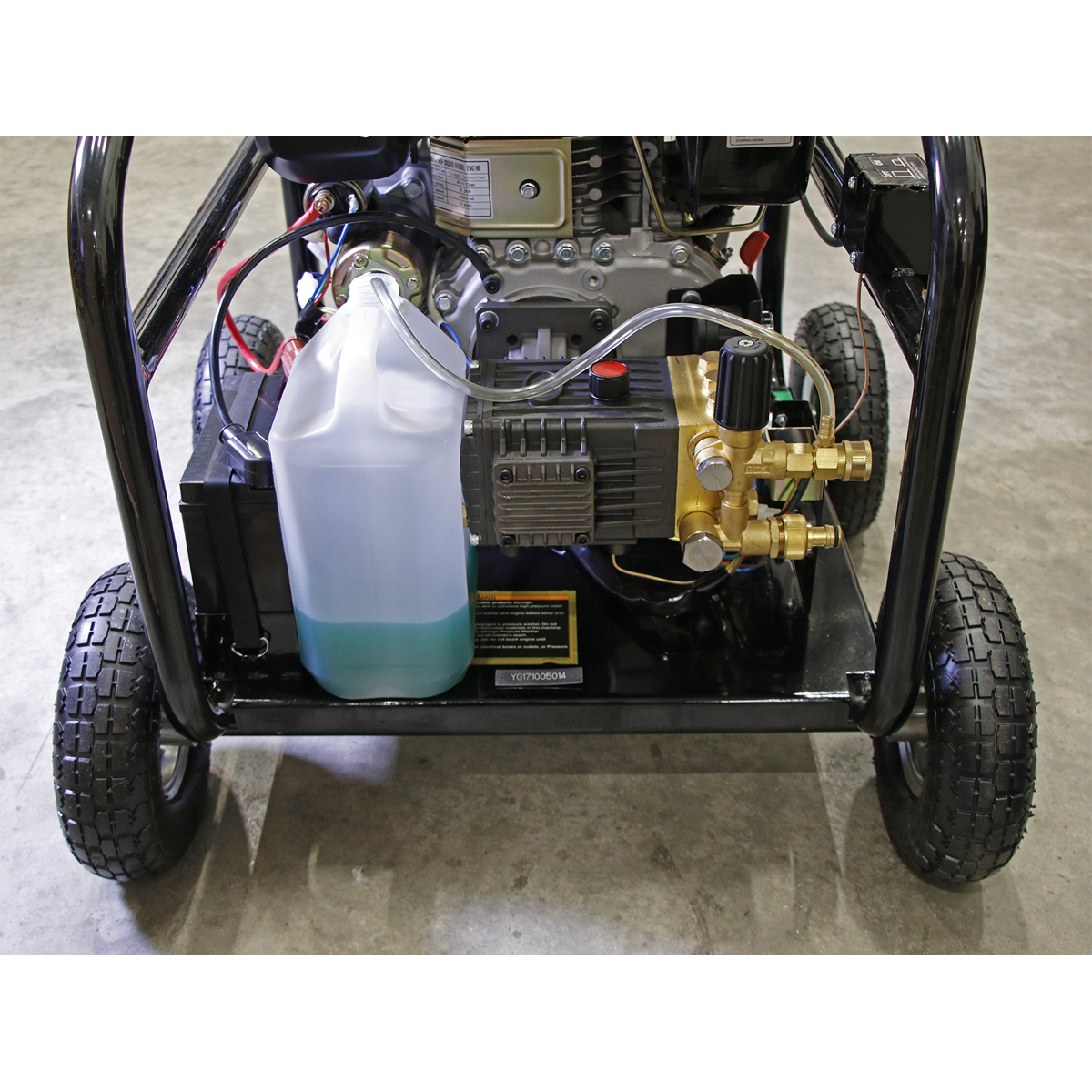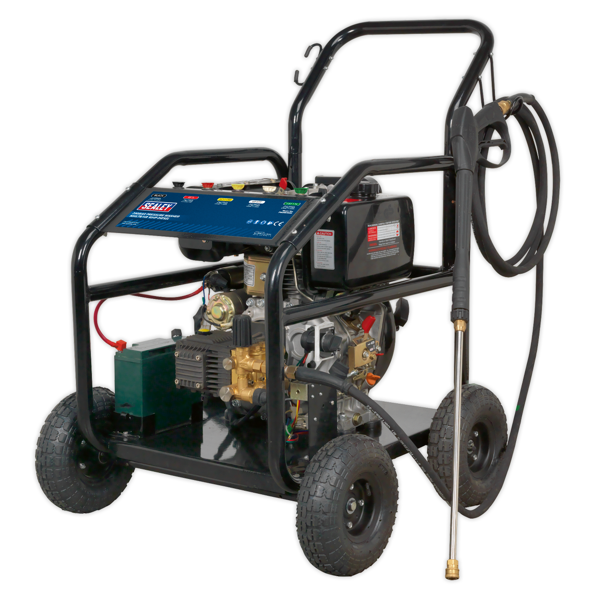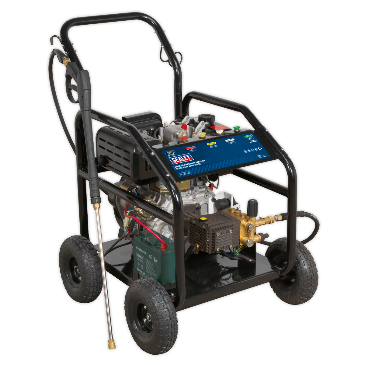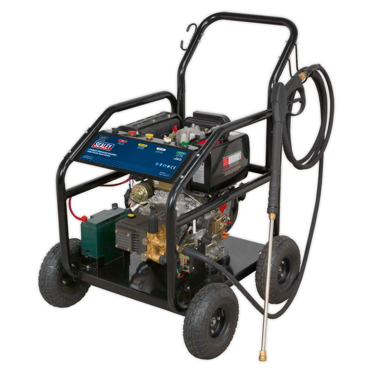 • Diesel powered pressure washer with electric and recoil starting.