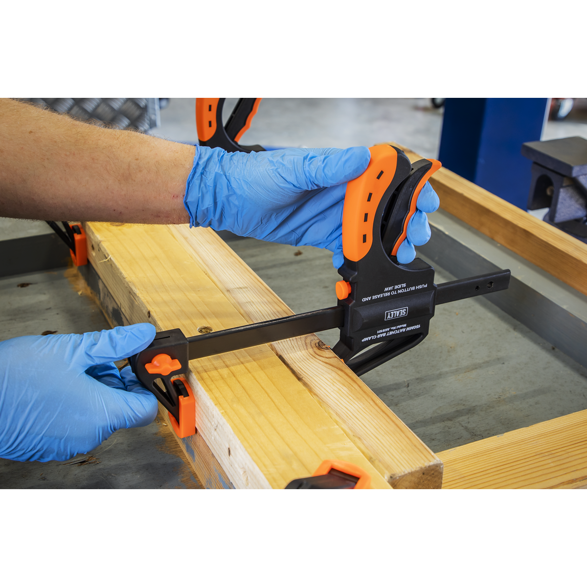 • Ratchet action with comfort grip handle and quick release button for fast adjustment.