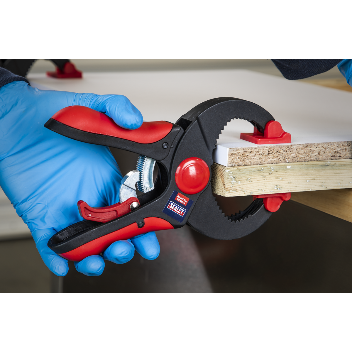 • Pack of four quick ratcheting clamps with easy release trigger.