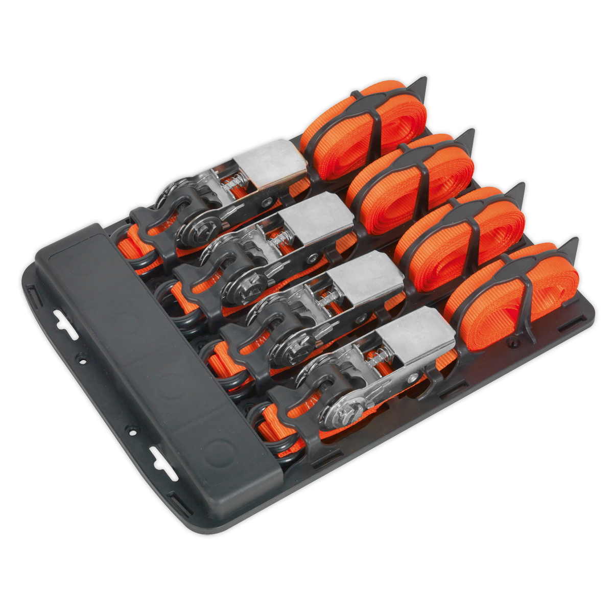 Ratchet Straps Polyester Webbing with S-Hooks 25mm x 4m 500kg Breaking Strength - 2 Pairs