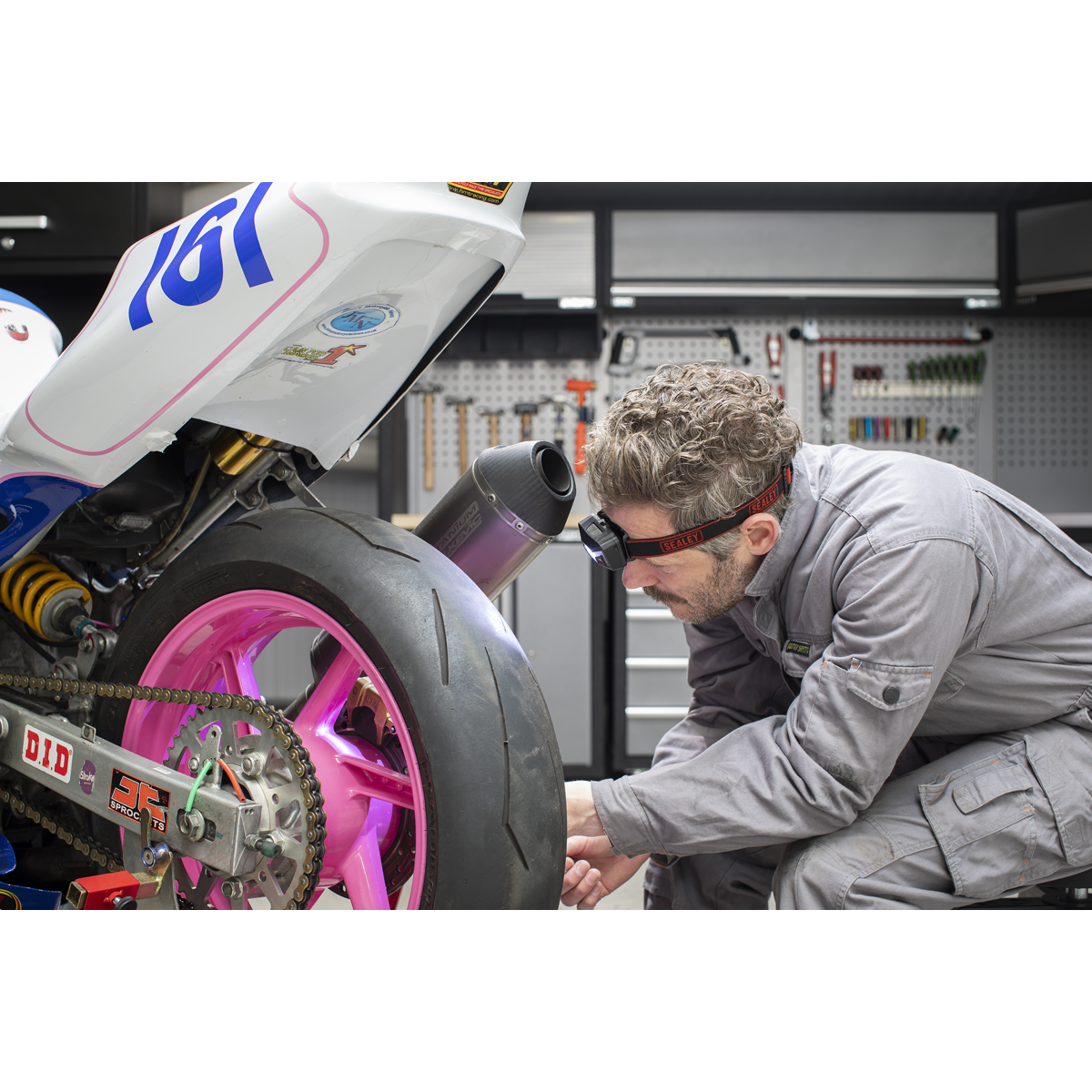 • Hands-free head torch with adjustable 3W SMD LED spotlight to direct light as required.